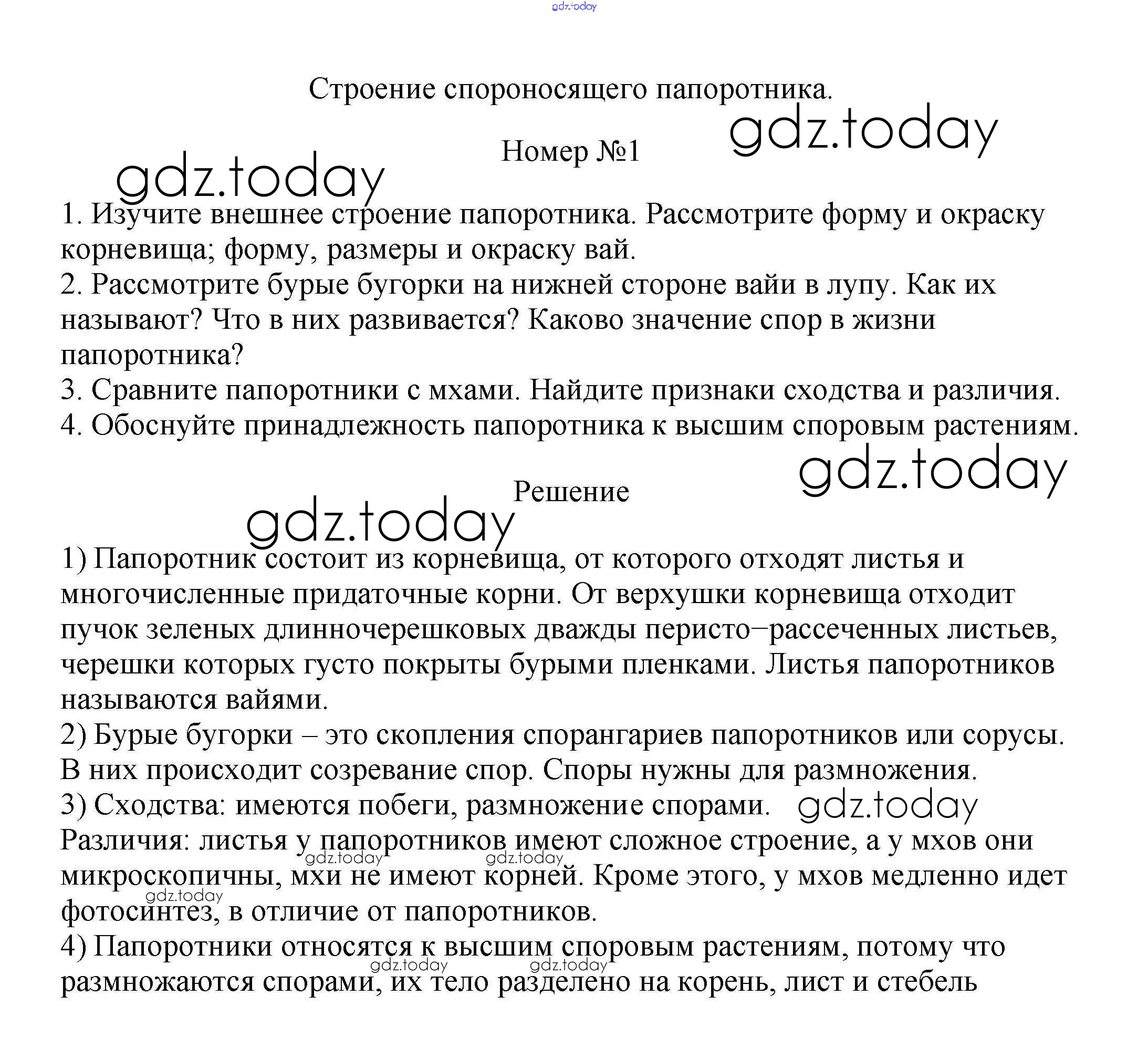 На страницах сайта gdz.today вы найдете учебный и вспомогательный материал, направленный на улучшения знаний школьной программы. ГДЗ - онлайн мир знаний Строение спороносящего папоротника Решение к §4. Отделы: Плауновидные, Хвощевидные, Папоротниковидные 1 Учебнику по Биологии для 7 класса Пасечник Линейный курс Дрофа 2020