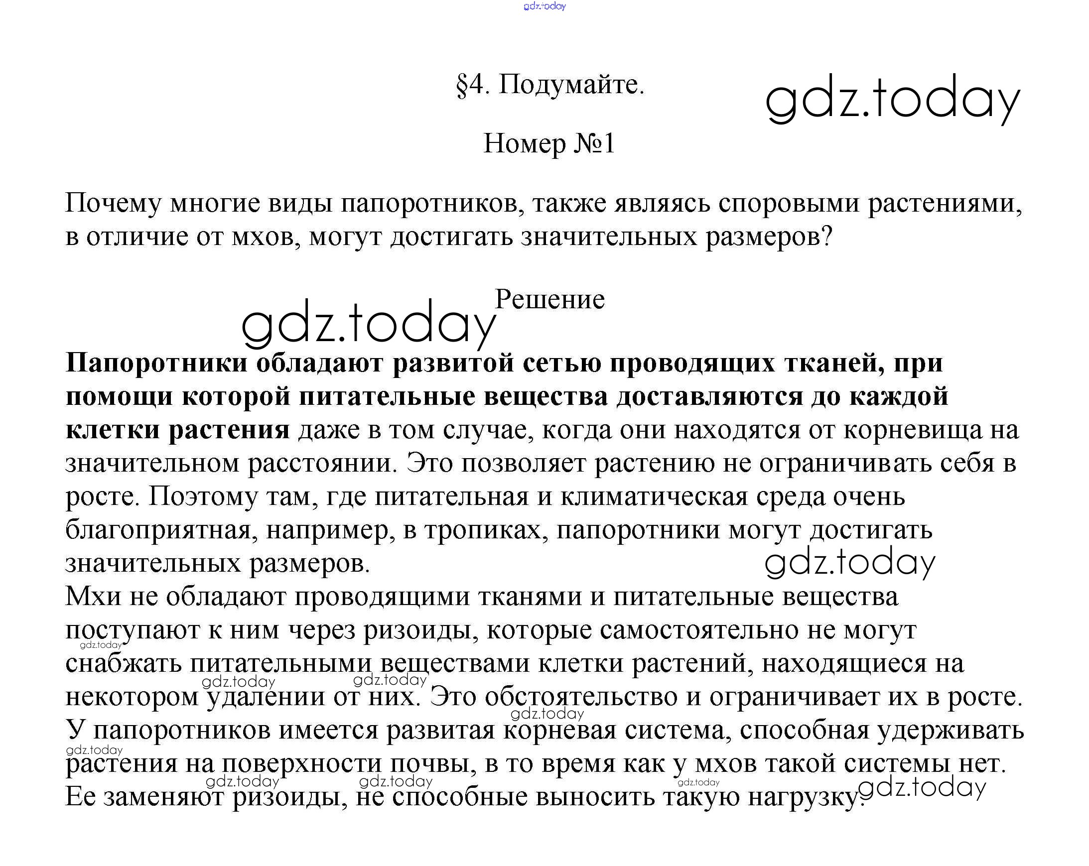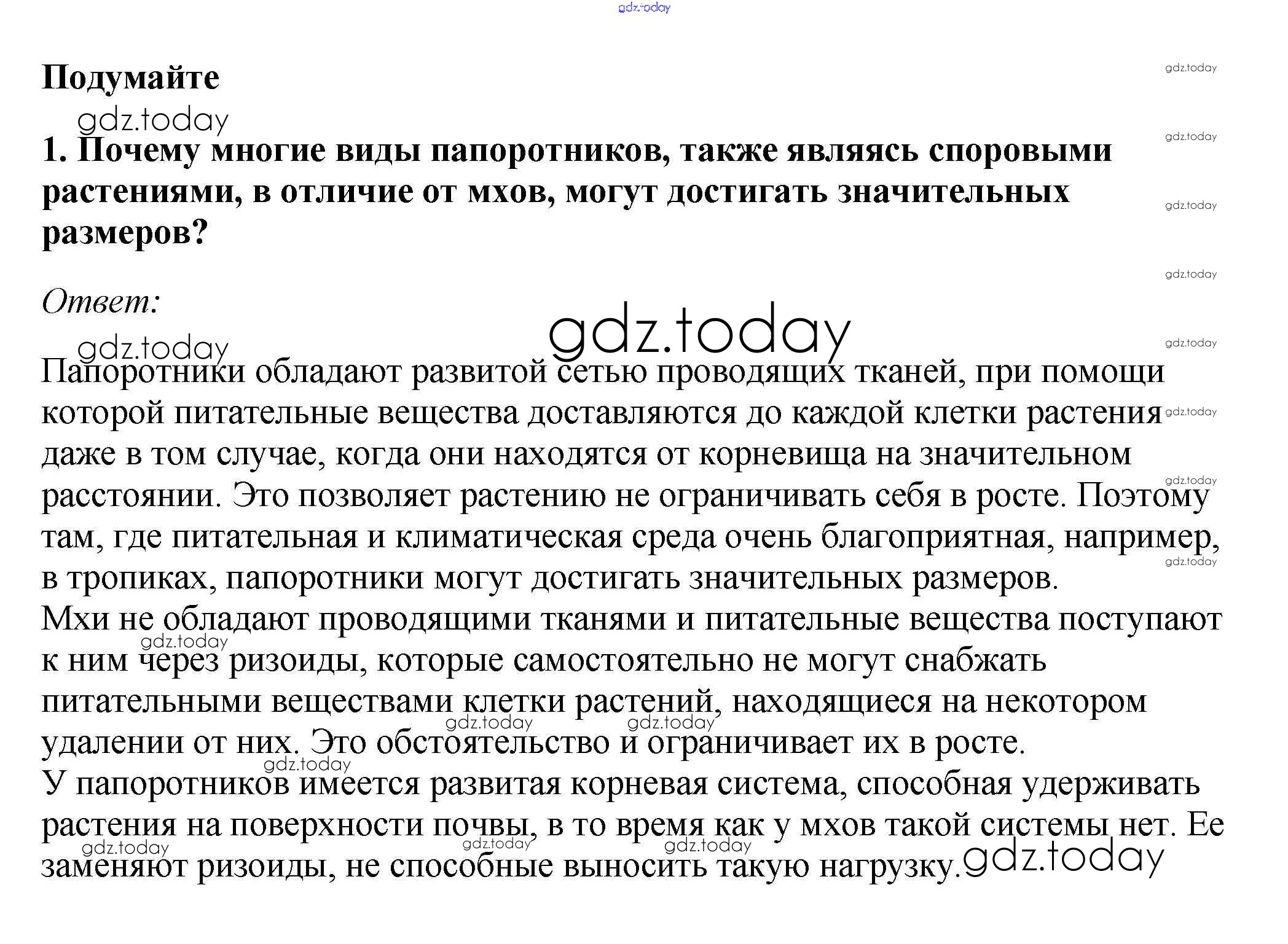 На страницах сайта gdz.today вы найдете учебный и вспомогательный материал, направленный на улучшения знаний школьной программы. ГДЗ - онлайн мир знаний Подумайте Решение к §4. Отделы: Плауновидные, Хвощевидные, Папоротниковидные 1 Учебнику по Биологии для 7 класса Пасечник Линейный курс Дрофа 2020