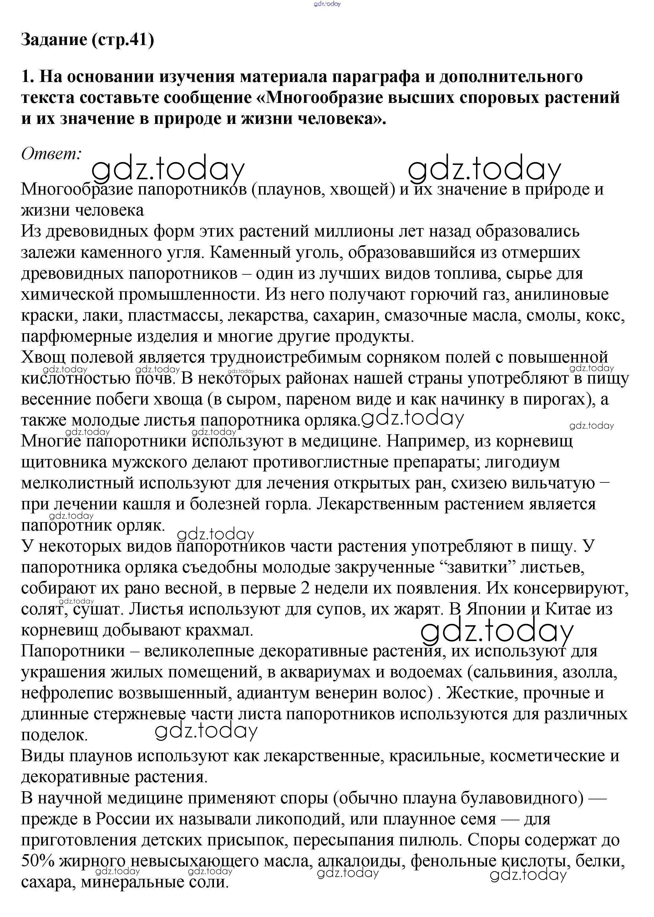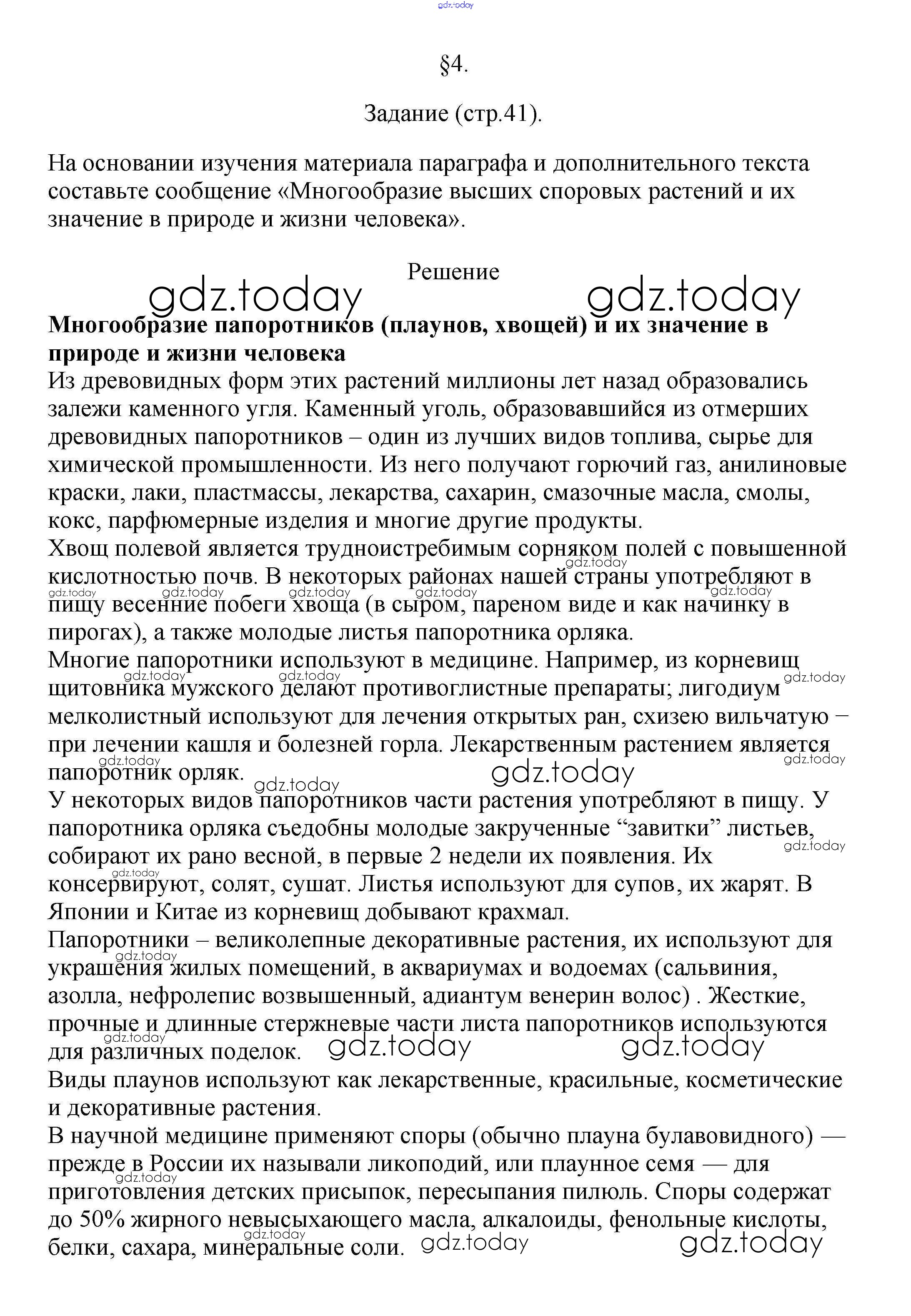 На страницах сайта gdz.today вы найдете учебный и вспомогательный материал, направленный на улучшения знаний школьной программы. ГДЗ - онлайн мир знаний Задания Решение к §4. Отделы: Плауновидные, Хвощевидные, Папоротниковидные стр.41 Учебнику по Биологии для 7 класса Пасечник Линейный курс Дрофа 2020
