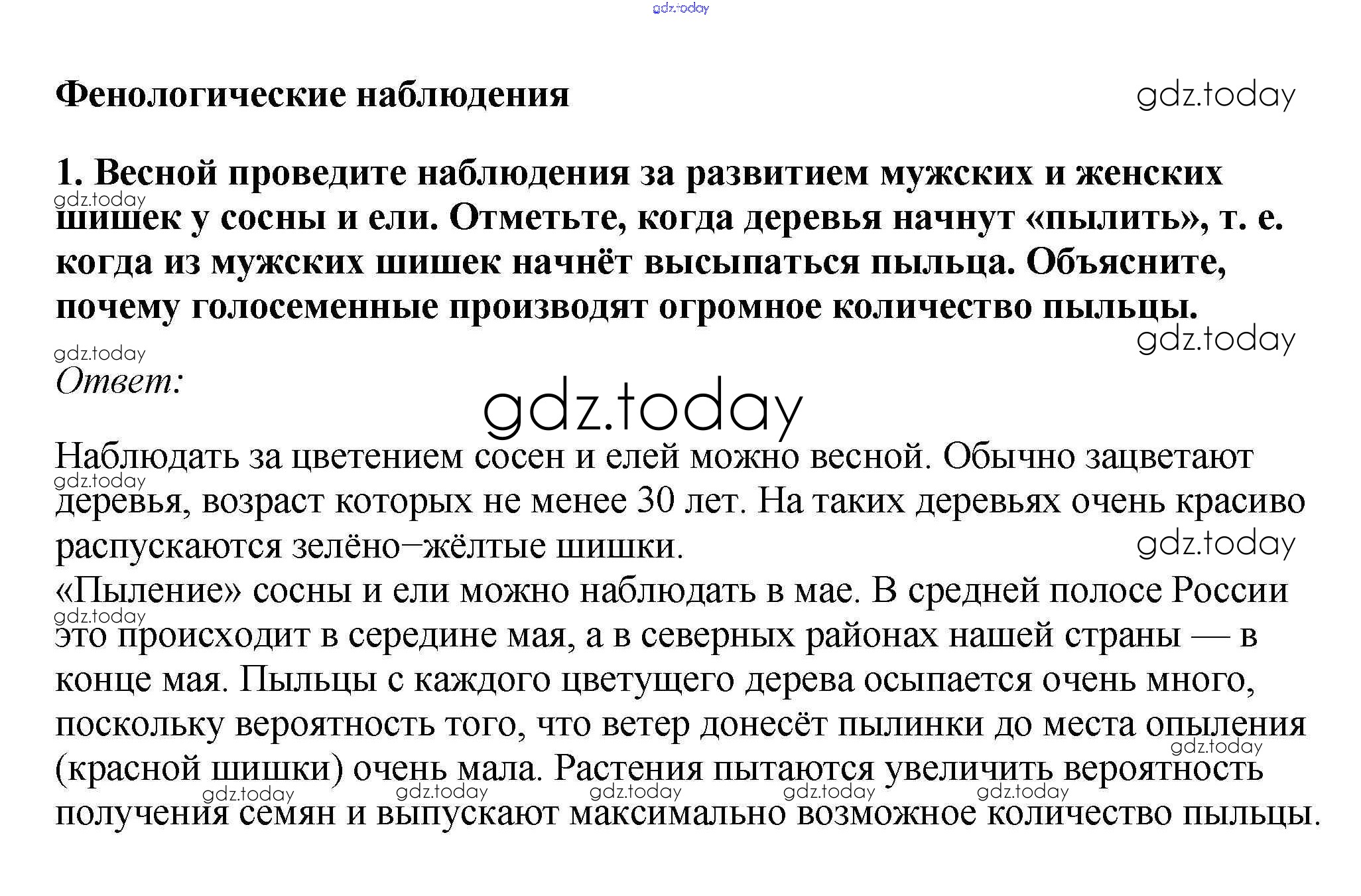 На страницах сайта gdz.today вы найдете учебный и вспомогательный материал, направленный на улучшения знаний школьной программы. ГДЗ - онлайн мир знаний Фенологические наблюдения Решение к §5. Отдел Голосеменные 1 Учебнику по Биологии для 7 класса Пасечник Линейный курс Дрофа 2020