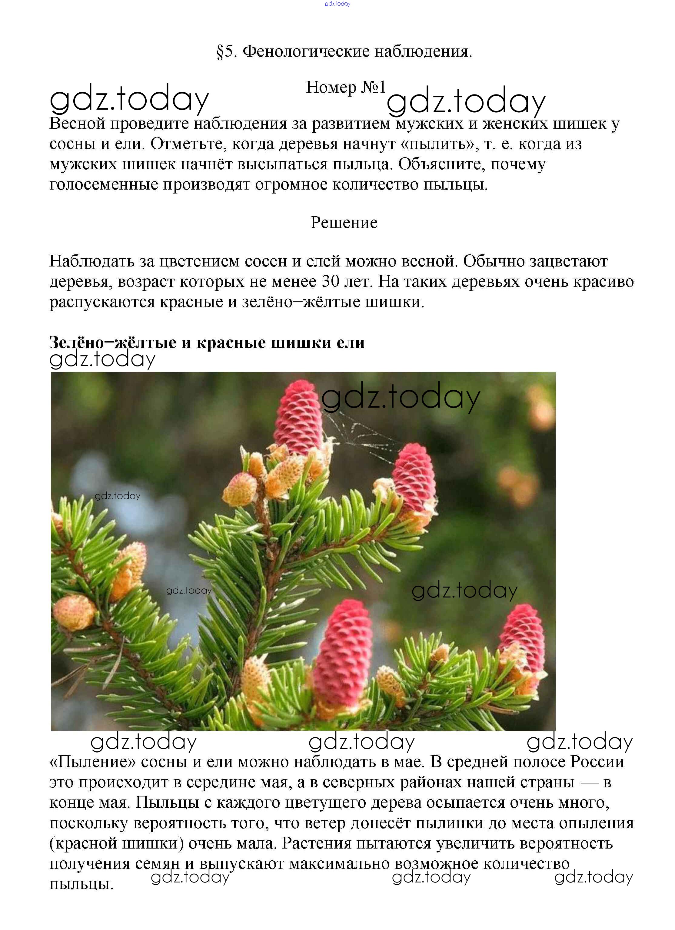 Ответы к Фенологические наблюдения Решение к §5. Отдел Голосеменные 1 Учебнику по Биологии для 7 класса Пасечник Линейный курс Дрофа 2020