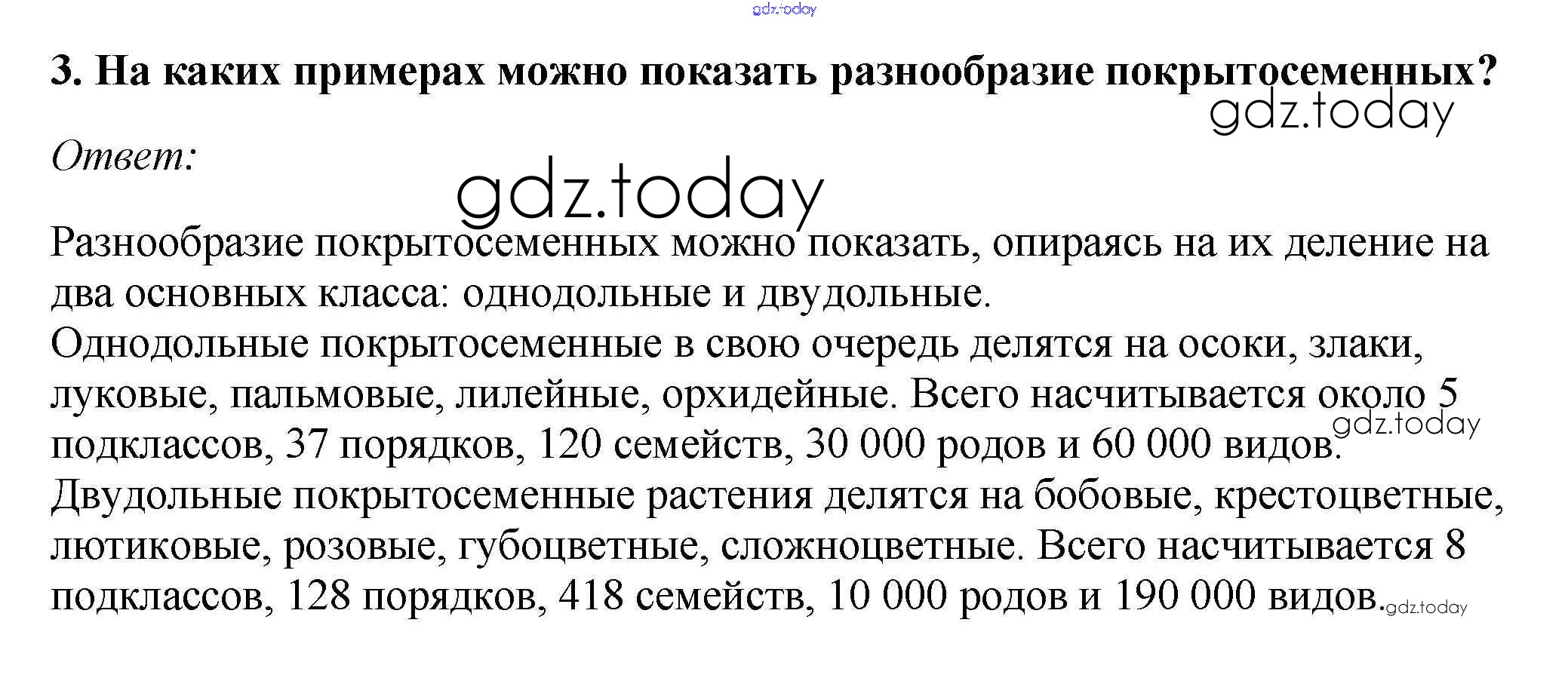 На страницах сайта gdz.today вы найдете учебный и вспомогательный материал, направленный на улучшения знаний школьной программы. ГДЗ - онлайн мир знаний Вопросы Решение к §6. Отдел Покрытосеменные, или Цветковые 3 Учебнику по Биологии для 7 класса Пасечник Линейный курс Дрофа 2020