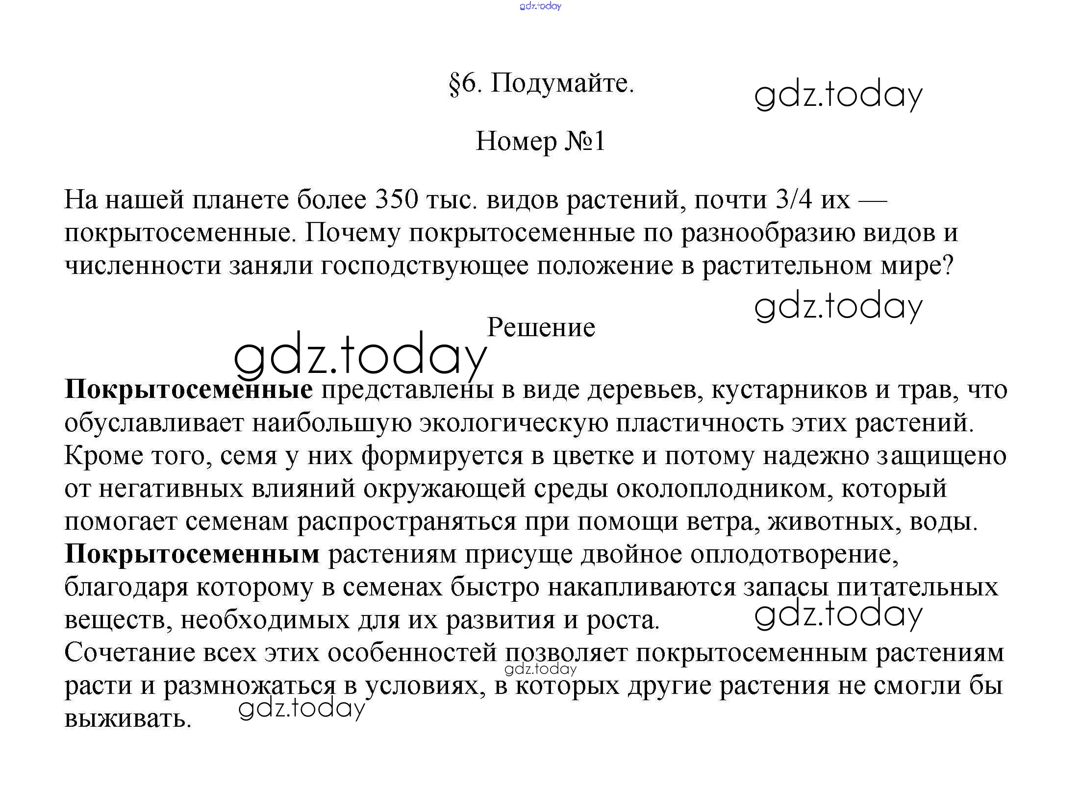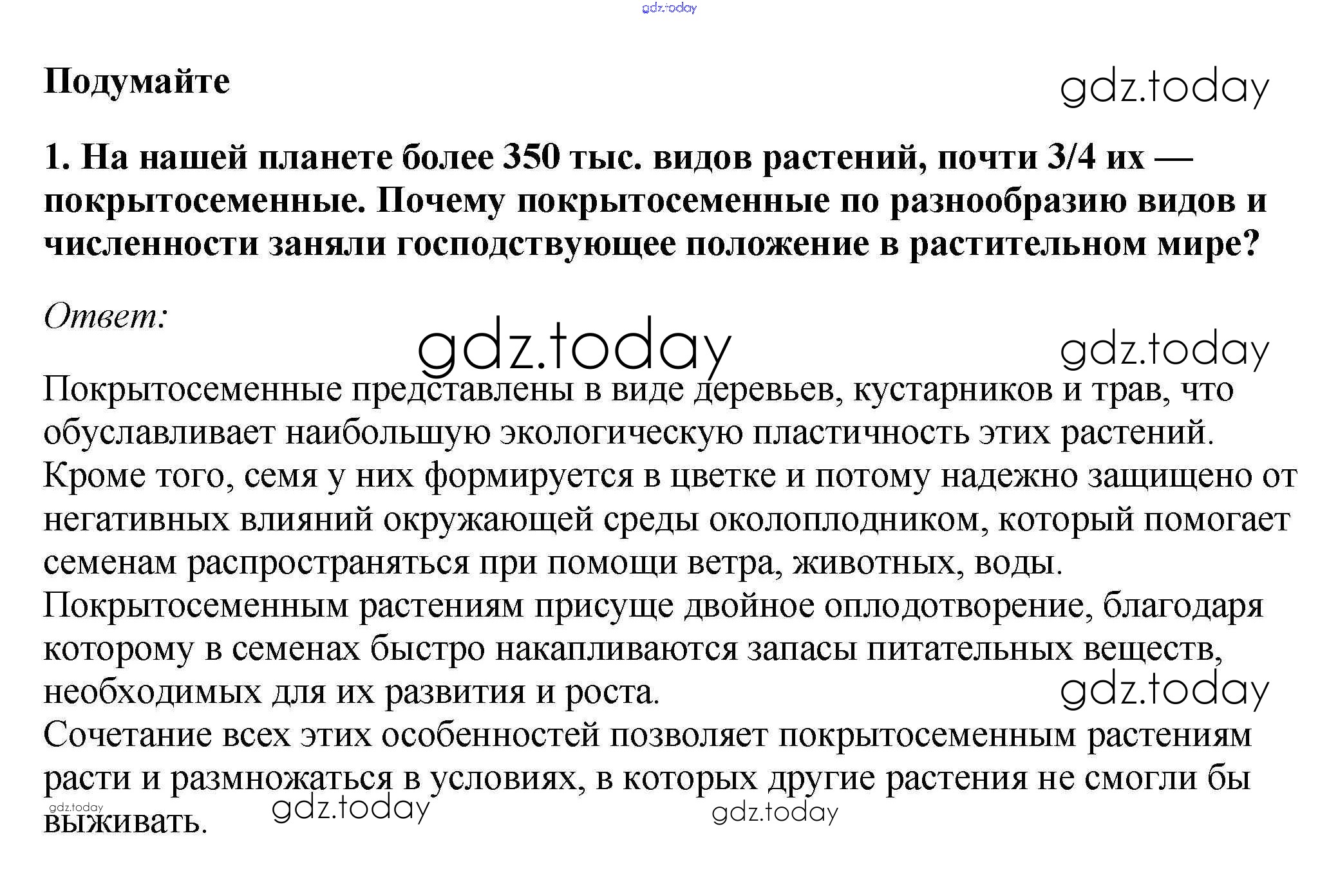 На страницах сайта gdz.today вы найдете учебный и вспомогательный материал, направленный на улучшения знаний школьной программы. ГДЗ - онлайн мир знаний Подумайте Решение к §6. Отдел Покрытосеменные, или Цветковые 1 Учебнику по Биологии для 7 класса Пасечник Линейный курс Дрофа 2020