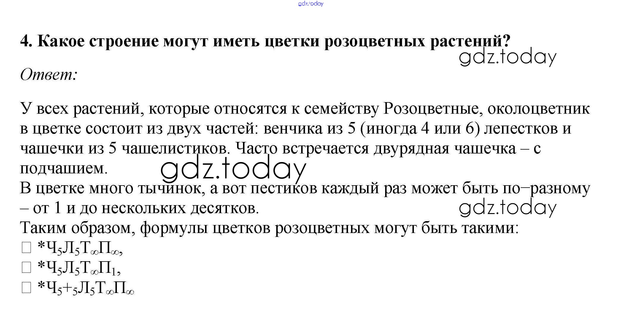 На страницах сайта gdz.today вы найдете учебный и вспомогательный материал, направленный на улучшения знаний школьной программы. ГДЗ - онлайн мир знаний Вопросы Решение к §9. Класс двудольные. Семейства Крестоцветные (Капустные) и Розоцветные 4 Учебнику по Биологии для 7 класса Пасечник Линейный курс Дрофа 2020