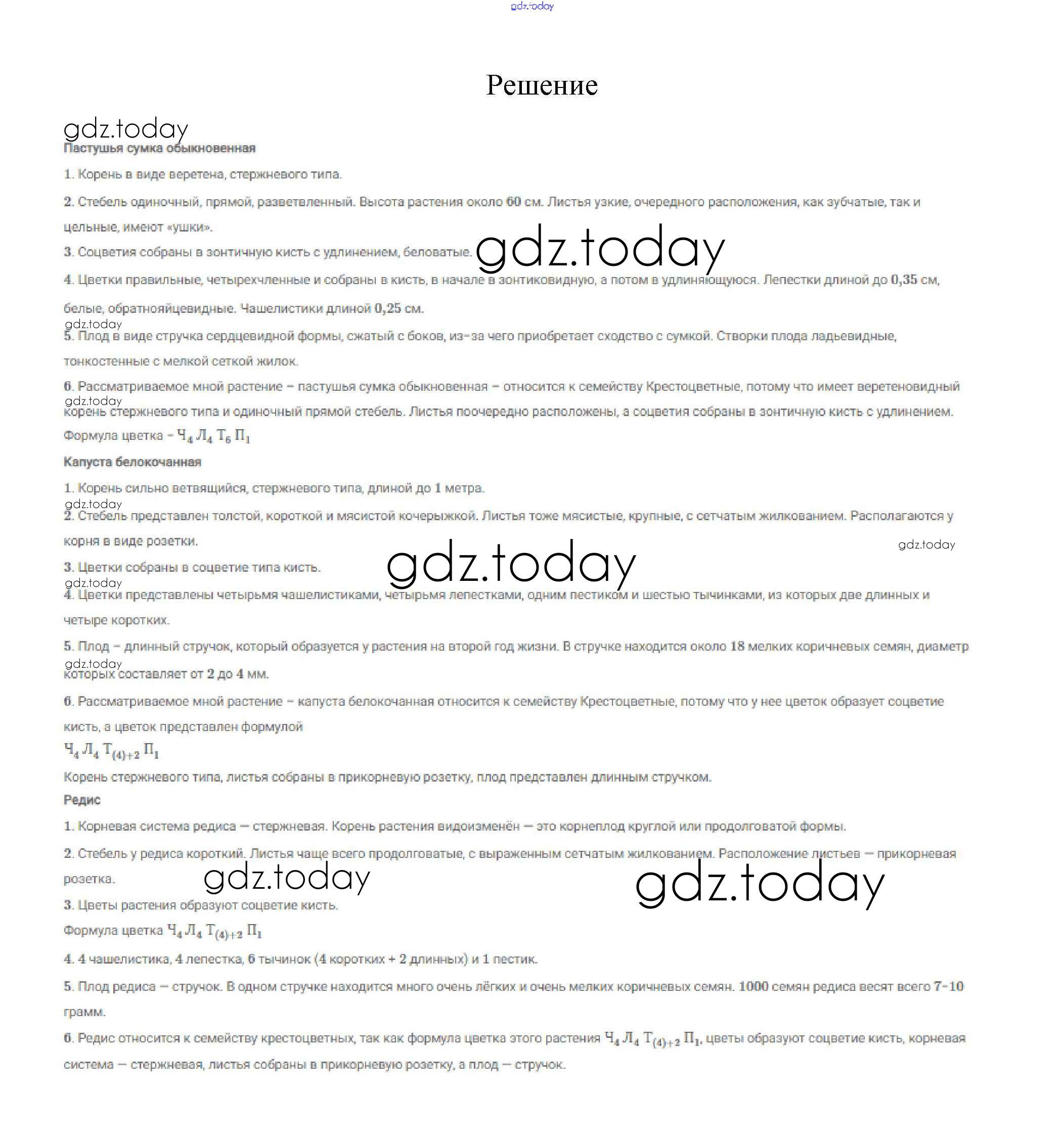 Решение к §9. Класс двудольные. Семейства Крестоцветные (Капустные) и Розоцветные