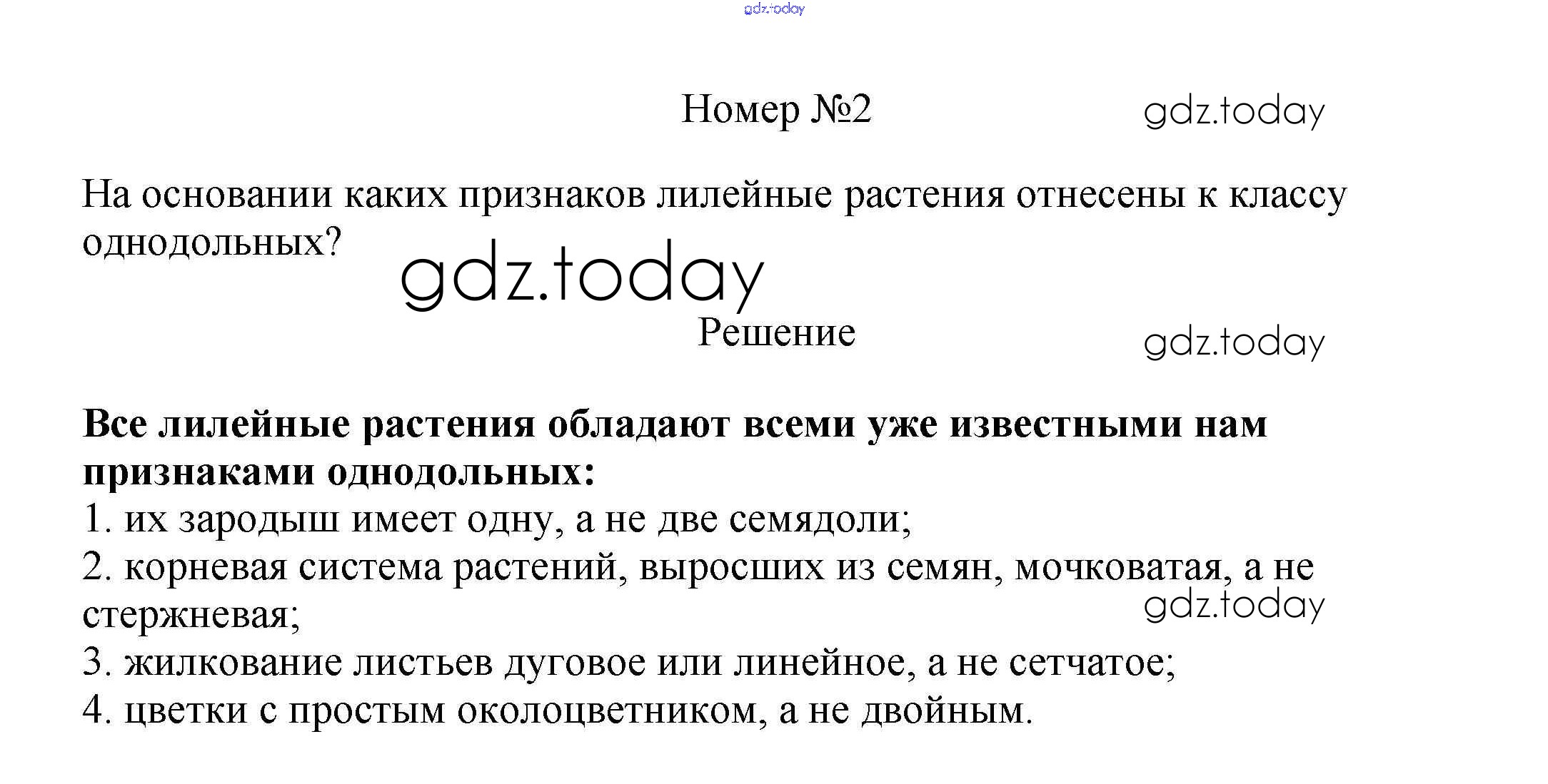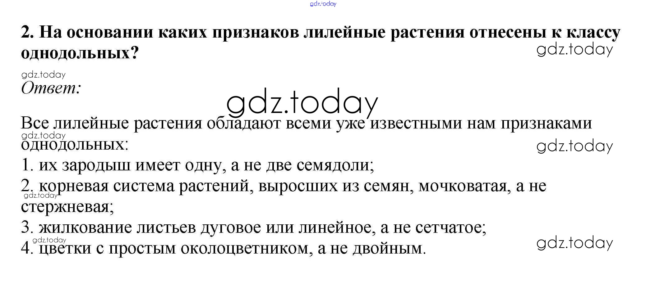 На страницах сайта gdz.today вы найдете учебный и вспомогательный материал, направленный на улучшения знаний школьной программы. ГДЗ - онлайн мир знаний Вопросы Решение к §11. Класс Однодольные. Семейства Лилейные и Злаки 2 Учебнику по Биологии для 7 класса Пасечник Линейный курс Дрофа 2020