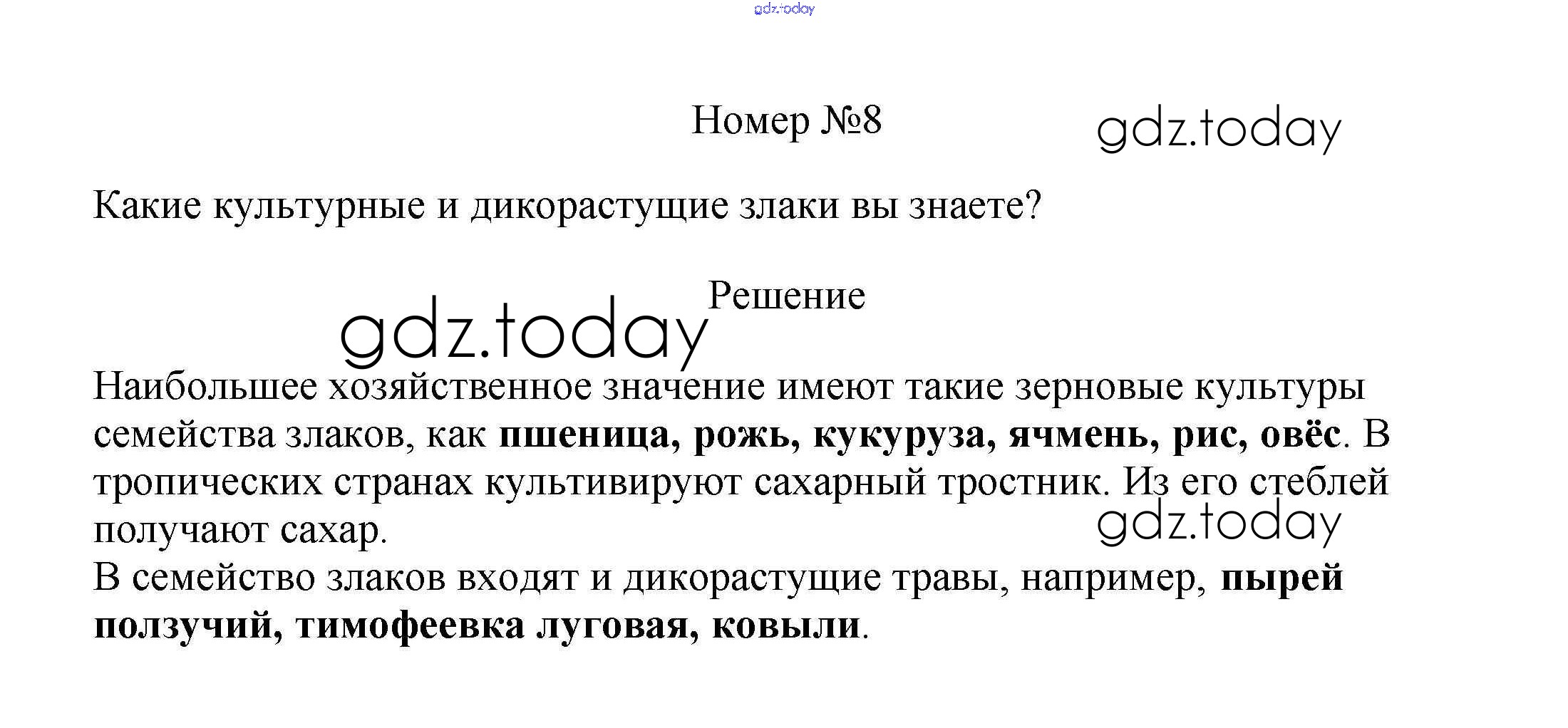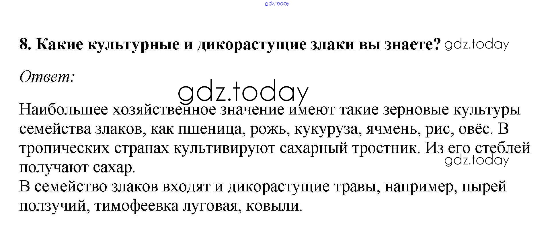 На страницах сайта gdz.today вы найдете учебный и вспомогательный материал, направленный на улучшения знаний школьной программы. ГДЗ - онлайн мир знаний Вопросы Решение к §11. Класс Однодольные. Семейства Лилейные и Злаки 8 Учебнику по Биологии для 7 класса Пасечник Линейный курс Дрофа 2020