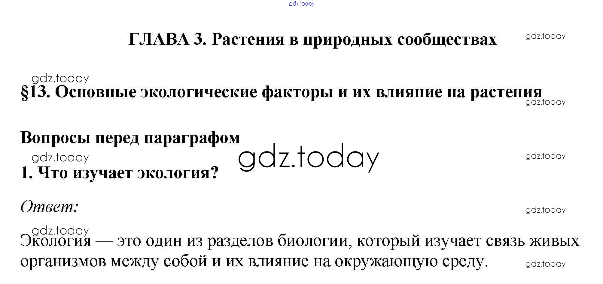 На страницах сайта gdz.today вы найдете учебный и вспомогательный материал, направленный на улучшения знаний школьной программы. ГДЗ - онлайн мир знаний Вопросы перед параграфом Решение к §13. Основные экологические факторы и их влияние на растения 1 Учебнику по Биологии для 7 класса Пасечник Линейный курс Дрофа 2020