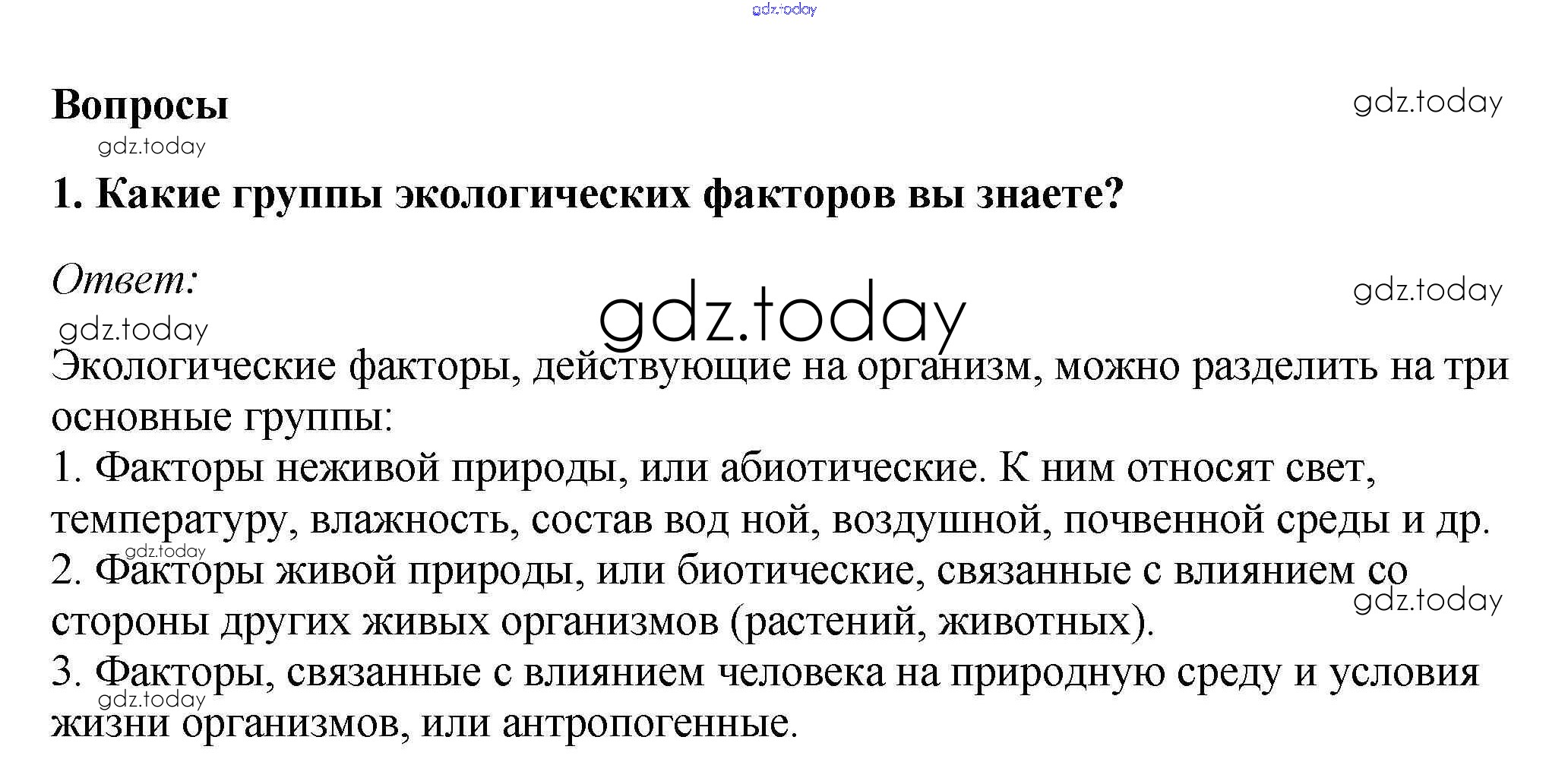 На страницах сайта gdz.today вы найдете учебный и вспомогательный материал, направленный на улучшения знаний школьной программы. ГДЗ - онлайн мир знаний Вопросы Решение к §13. Основные экологические факторы и их влияние на растения 1 Учебнику по Биологии для 7 класса Пасечник Линейный курс Дрофа 2020