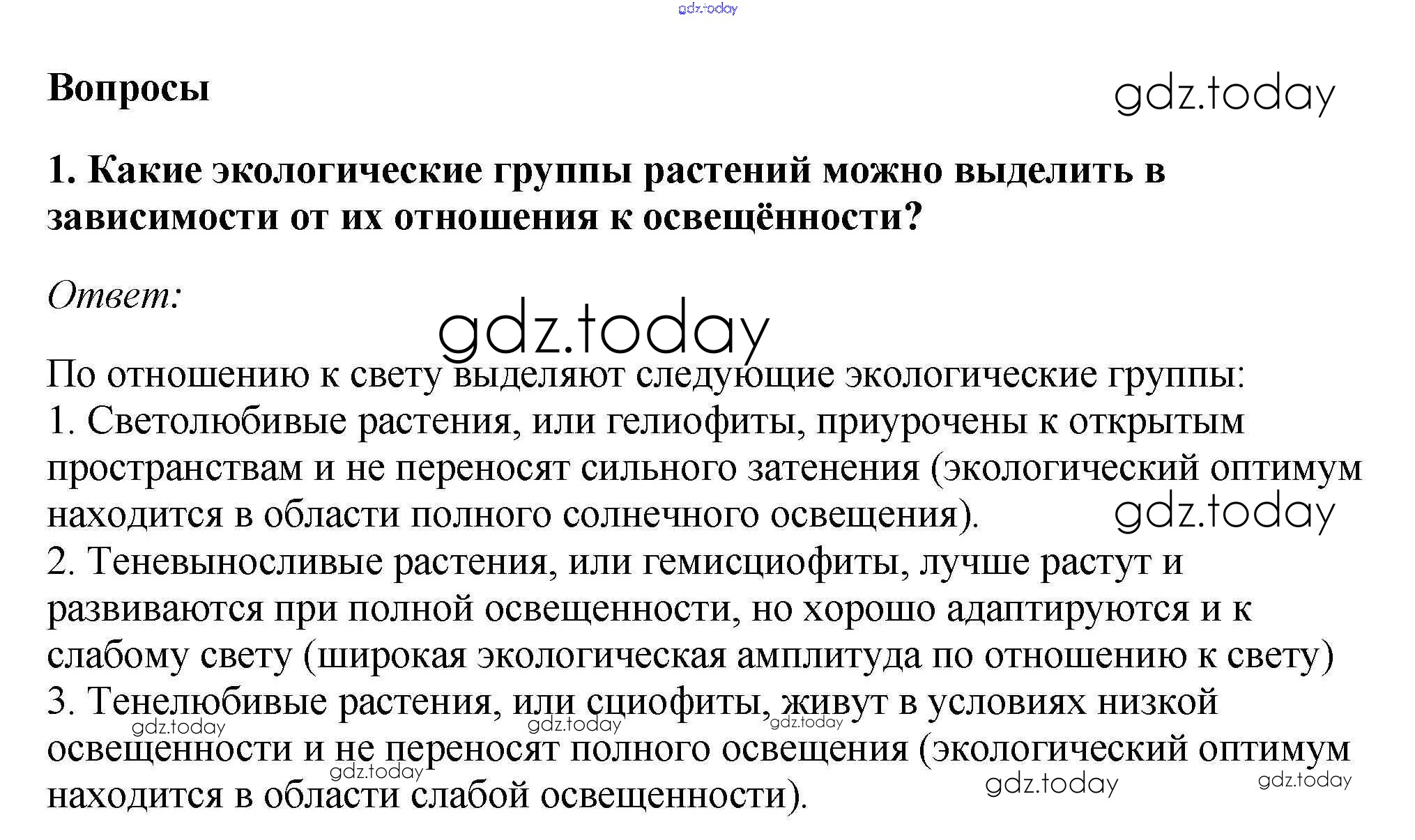 На страницах сайта gdz.today вы найдете учебный и вспомогательный материал, направленный на улучшения знаний школьной программы. ГДЗ - онлайн мир знаний Вопросы Решение к §14. Характеристика основных экологических групп растений 1 Учебнику по Биологии для 7 класса Пасечник Линейный курс Дрофа 2020