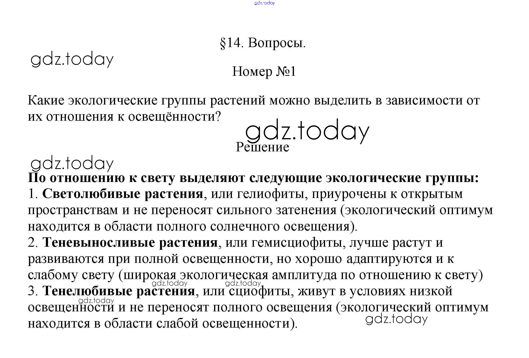 Решение к §14. Характеристика основных экологических групп растений