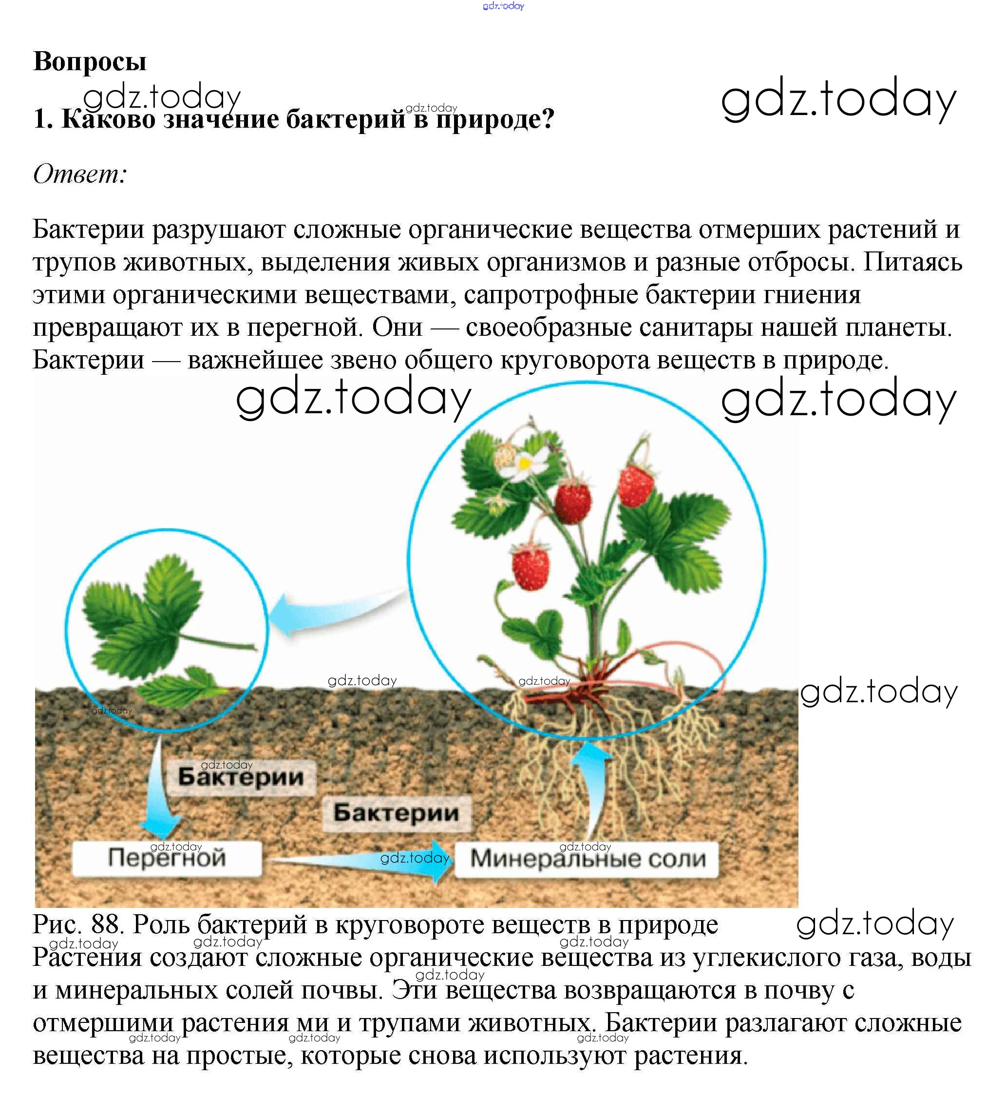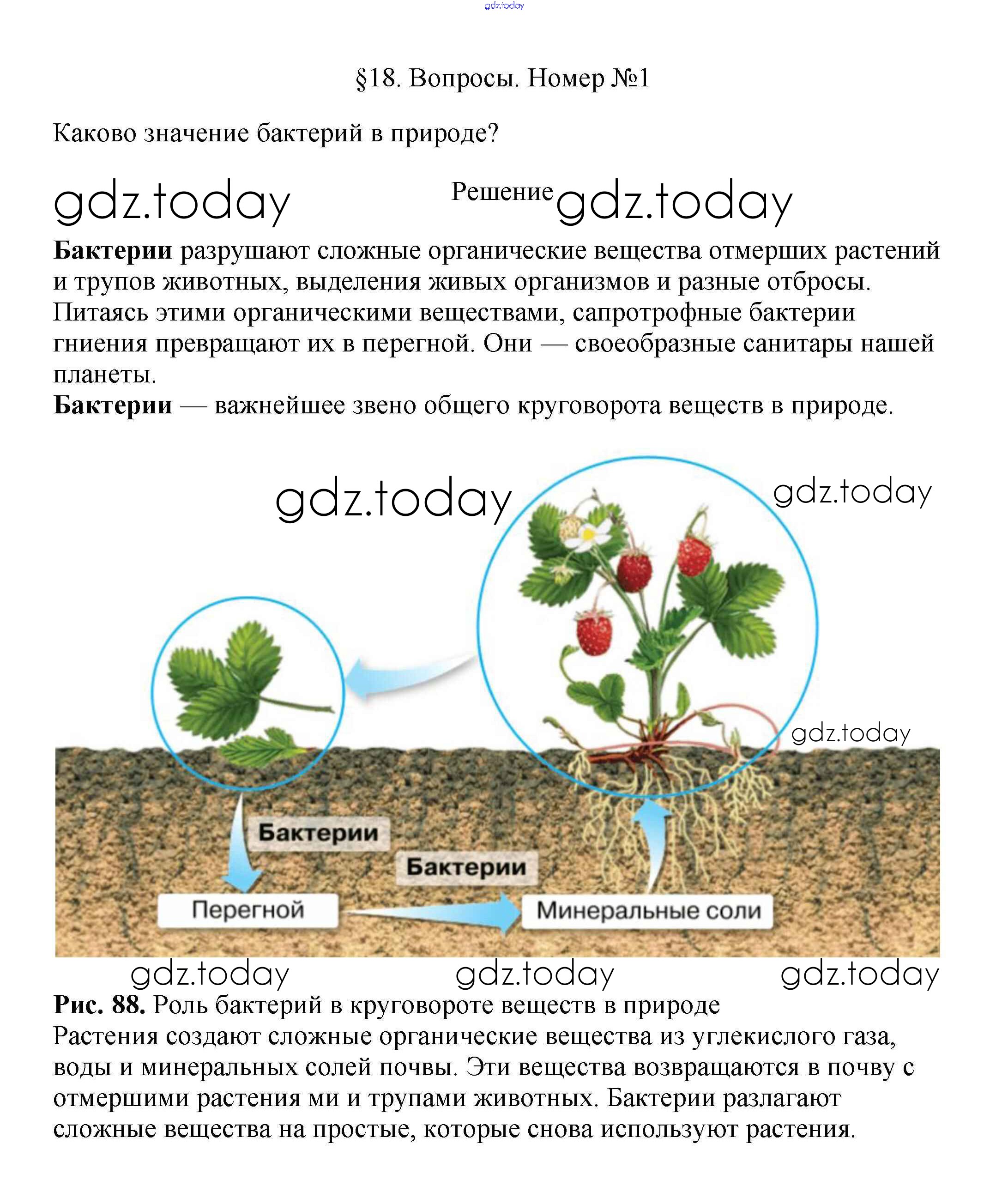 На страницах сайта gdz.today вы найдете учебный и вспомогательный материал, направленный на улучшения знаний школьной программы. ГДЗ - онлайн мир знаний Вопросы Решение к §18. Роль бактерий в природе и жизни человека 1 Учебнику по Биологии для 7 класса Пасечник Линейный курс Дрофа 2020