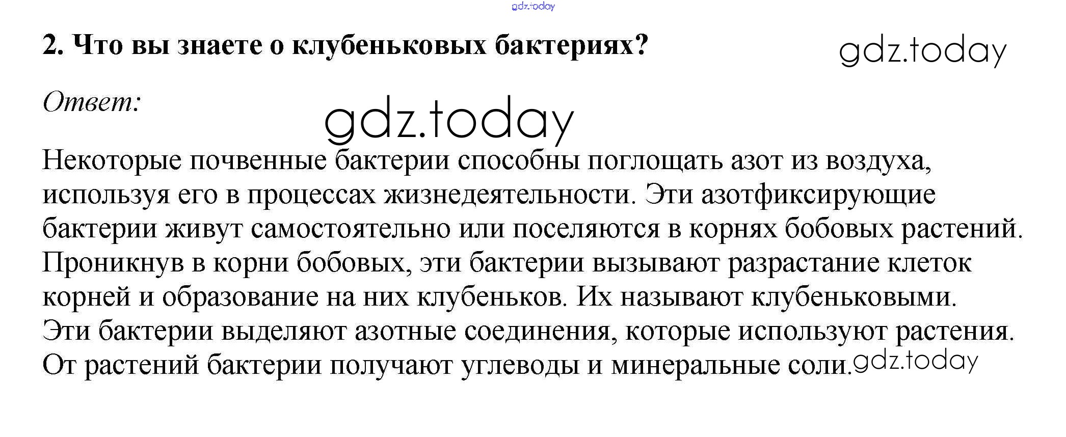 На страницах сайта gdz.today вы найдете учебный и вспомогательный материал, направленный на улучшения знаний школьной программы. ГДЗ - онлайн мир знаний Вопросы Решение к §18. Роль бактерий в природе и жизни человека 2 Учебнику по Биологии для 7 класса Пасечник Линейный курс Дрофа 2020