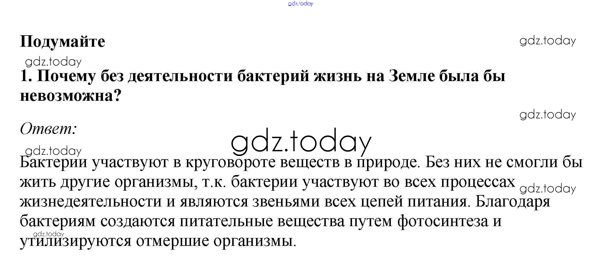 На страницах сайта gdz.today вы найдете учебный и вспомогательный материал, направленный на улучшения знаний школьной программы. ГДЗ - онлайн мир знаний Подумайте Решение к §18. Роль бактерий в природе и жизни человека 1 Учебнику по Биологии для 7 класса Пасечник Линейный курс Дрофа 2020
