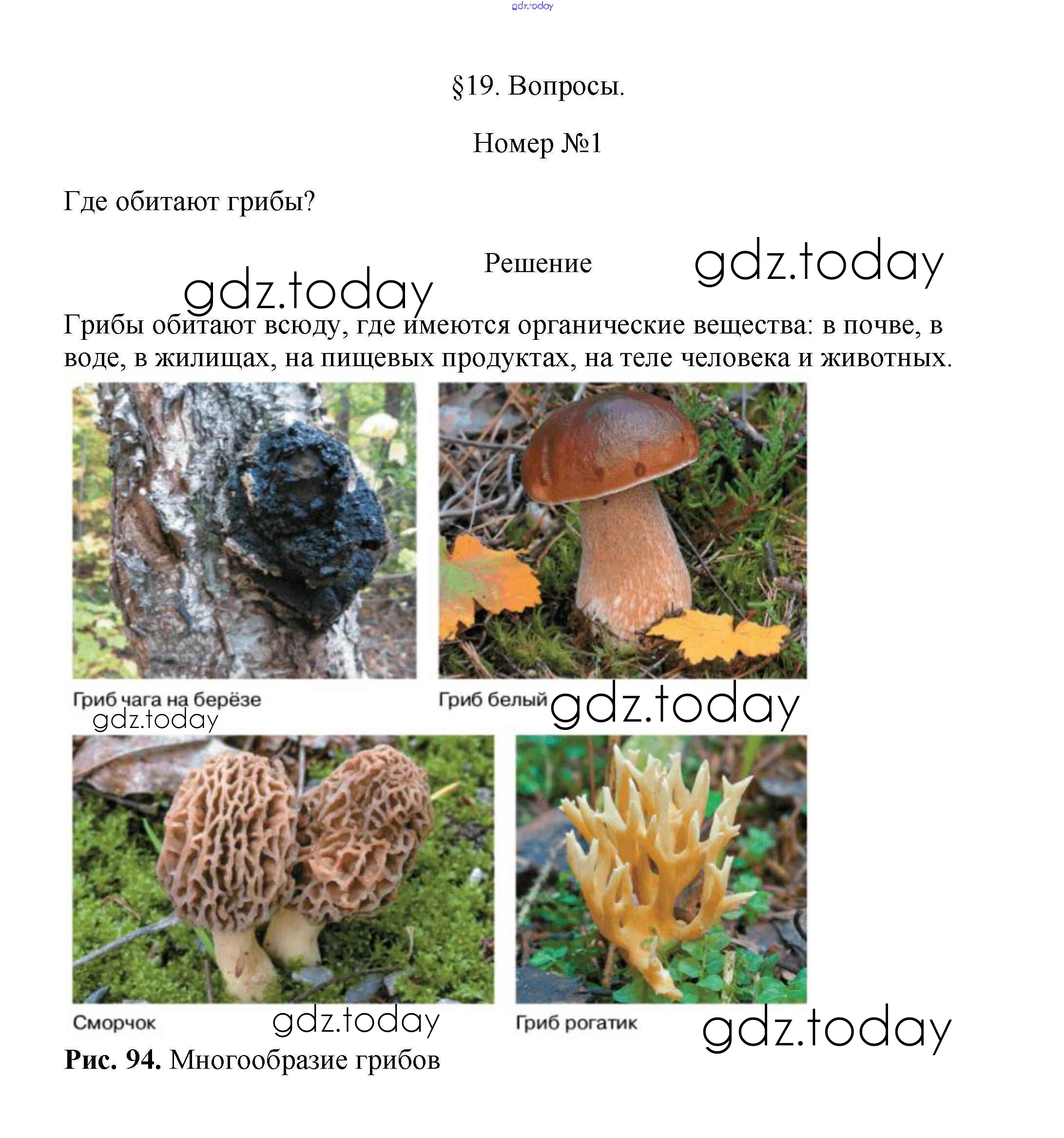 На страницах сайта gdz.today вы найдете учебный и вспомогательный материал, направленный на улучшения знаний школьной программы. ГДЗ - онлайн мир знаний Вопросы Решение к §19. Общая характеристика грибов 1 Учебнику по Биологии для 7 класса Пасечник Линейный курс Дрофа 2020