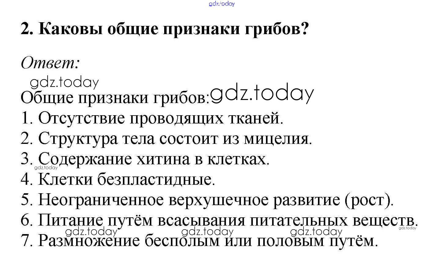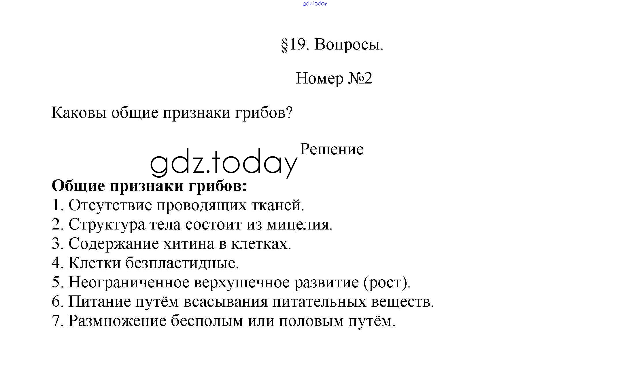 На страницах сайта gdz.today вы найдете учебный и вспомогательный материал, направленный на улучшения знаний школьной программы. ГДЗ - онлайн мир знаний Вопросы Решение к §19. Общая характеристика грибов 2 Учебнику по Биологии для 7 класса Пасечник Линейный курс Дрофа 2020
