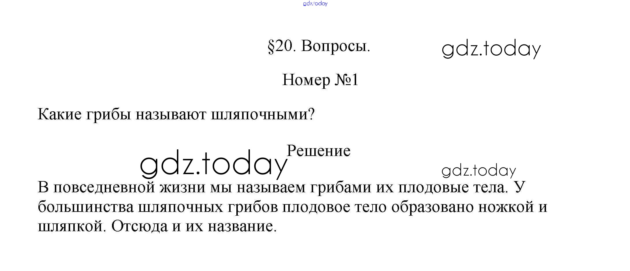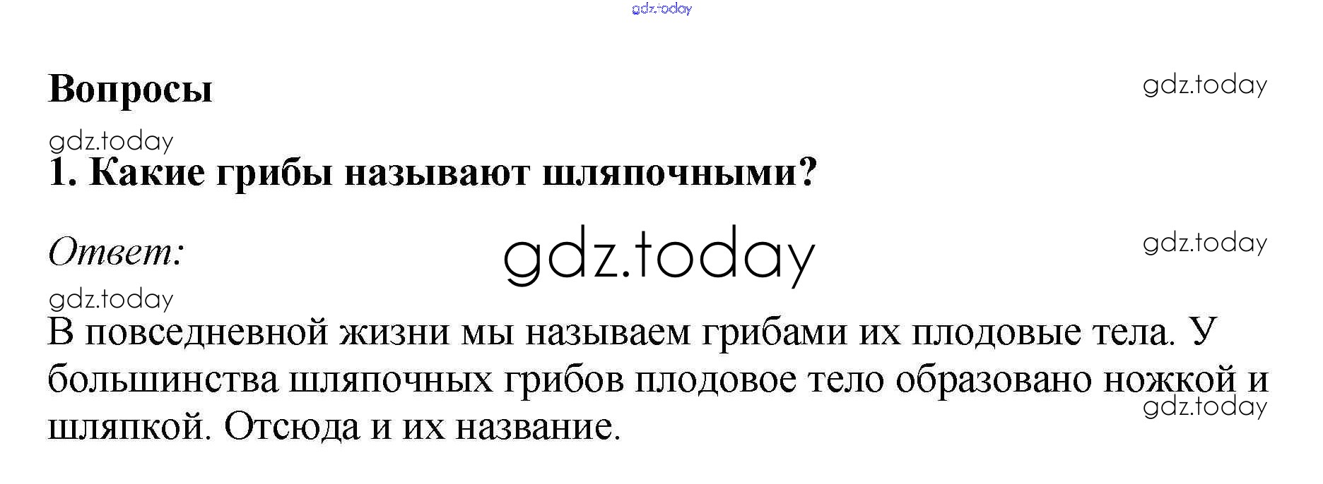 На страницах сайта gdz.today вы найдете учебный и вспомогательный материал, направленный на улучшения знаний школьной программы. ГДЗ - онлайн мир знаний Вопросы Решение к §20. Шляпочные грибы 1 Учебнику по Биологии для 7 класса Пасечник Линейный курс Дрофа 2020