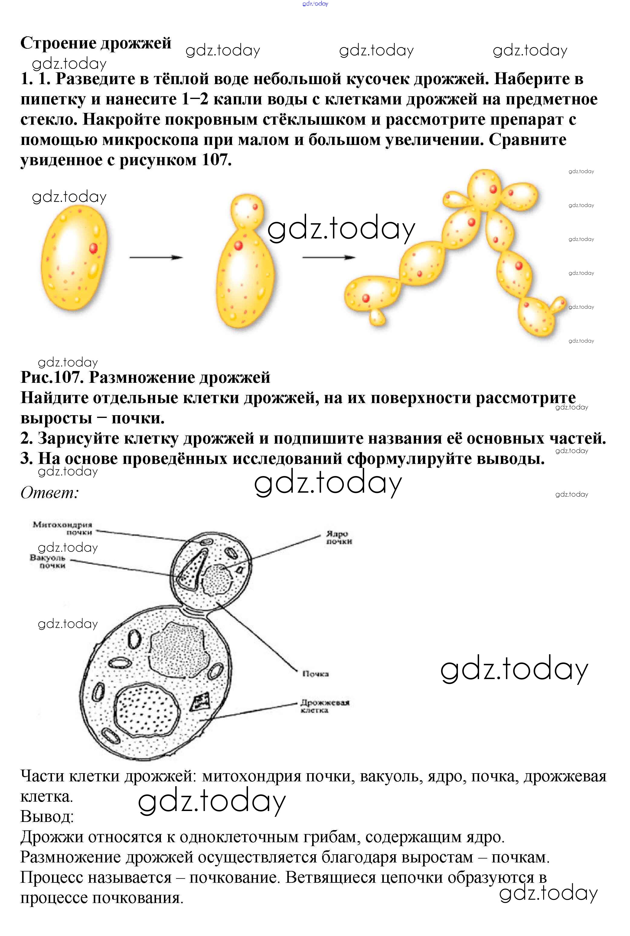 На страницах сайта gdz.today вы найдете учебный и вспомогательный материал, направленный на улучшения знаний школьной программы. ГДЗ - онлайн мир знаний Строение дрожжей Решение к §21. Плесневые грибы и дрожжи 1 Учебнику по Биологии для 7 класса Пасечник Линейный курс Дрофа 2020
