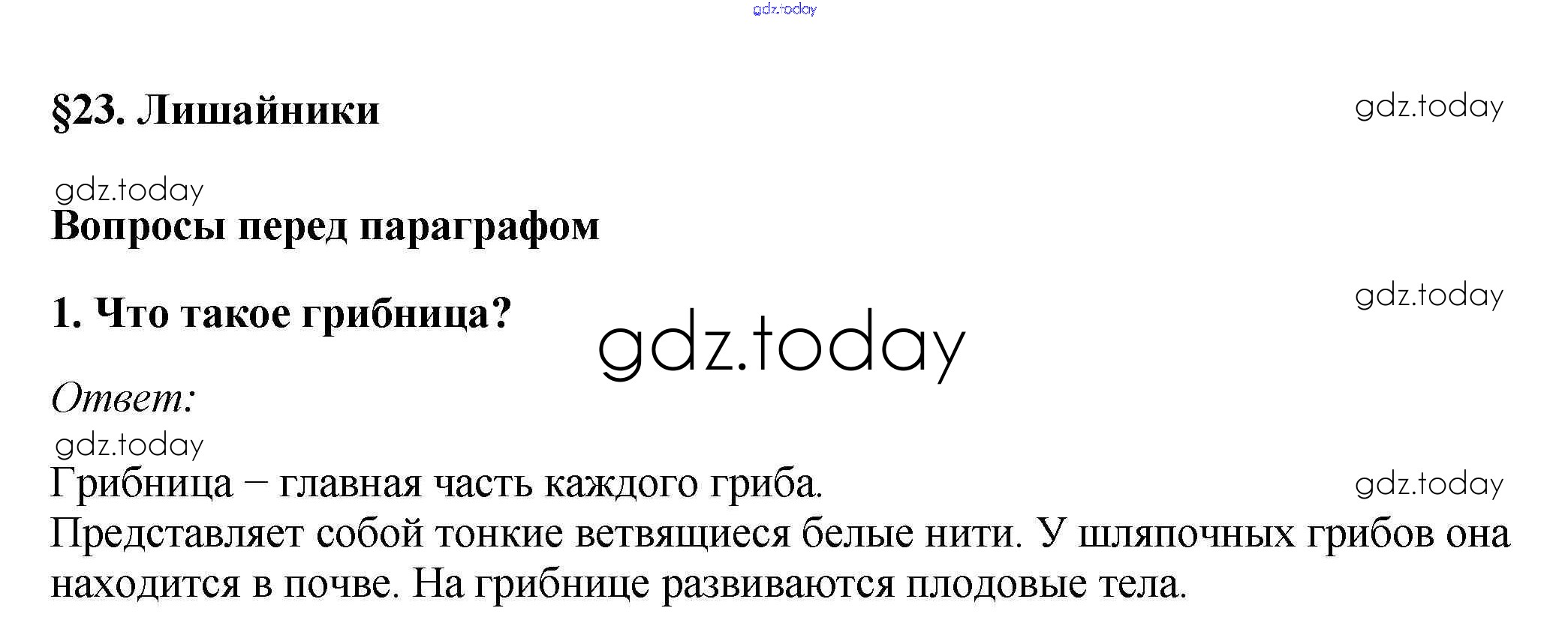 На страницах сайта gdz.today вы найдете учебный и вспомогательный материал, направленный на улучшения знаний школьной программы. ГДЗ - онлайн мир знаний Вопросы перед параграфом Решение к §23. Лишайники 1 Учебнику по Биологии для 7 класса Пасечник Линейный курс Дрофа 2020