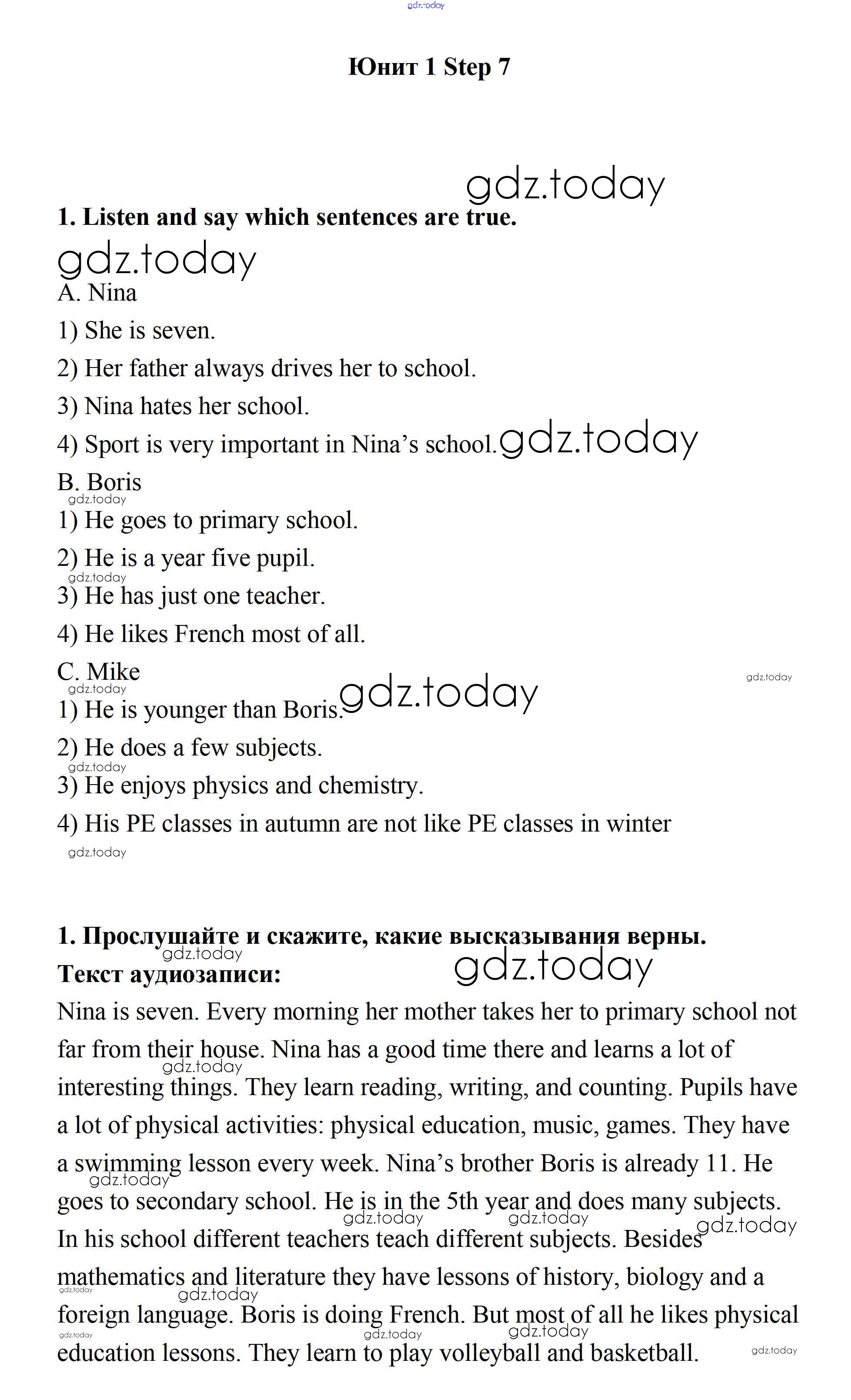 Ответы к Step 7 Решение к UNIT 1. SCHOOLS AND SCHOOLING. 1 Учебнику по Английскому языку для 7 класса Афанасьева, Михеева Дрофа Rainbow 2019