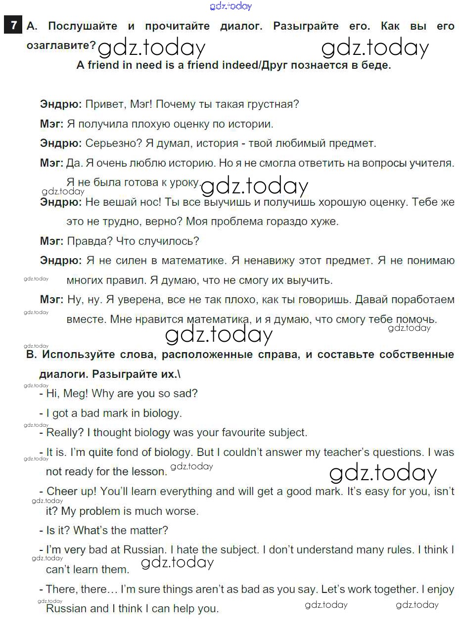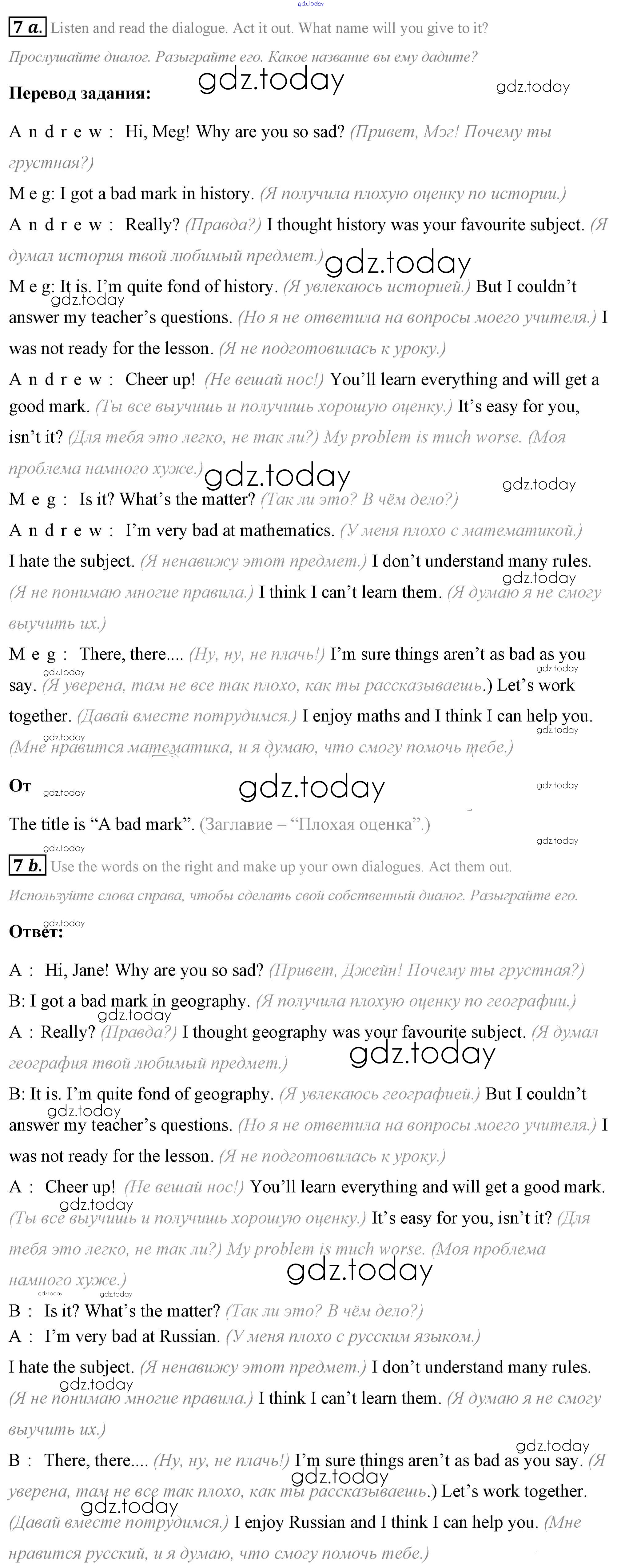 На страницах сайта gdz.today вы найдете учебный и вспомогательный материал, направленный на улучшения знаний школьной программы. ГДЗ - онлайн мир знаний Step 7 Решение к UNIT 1. SCHOOLS AND SCHOOLING. 7 Учебнику по Английскому языку для 7 класса Афанасьева, Михеева Дрофа Rainbow 2019