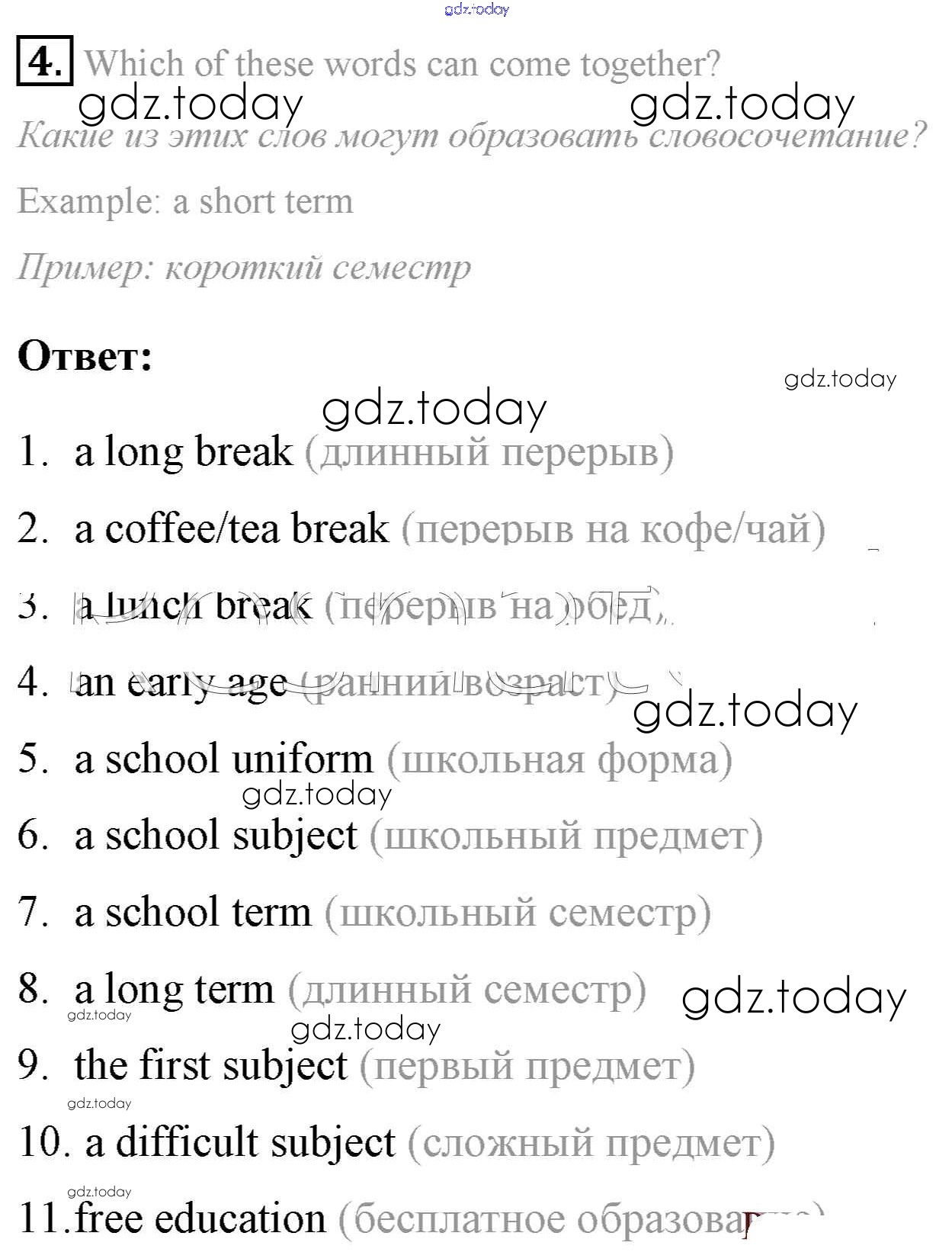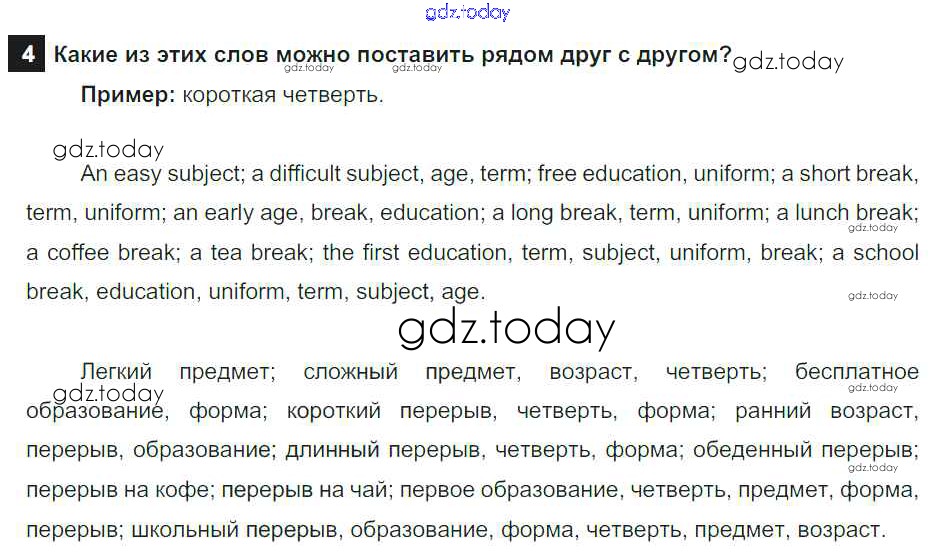 На страницах сайта gdz.today вы найдете учебный и вспомогательный материал, направленный на улучшения знаний школьной программы. ГДЗ - онлайн мир знаний Step 4 Решение к UNIT 1. SCHOOLS AND SCHOOLING. 4 Учебнику по Английскому языку для 7 класса Афанасьева, Михеева Дрофа Rainbow 2019