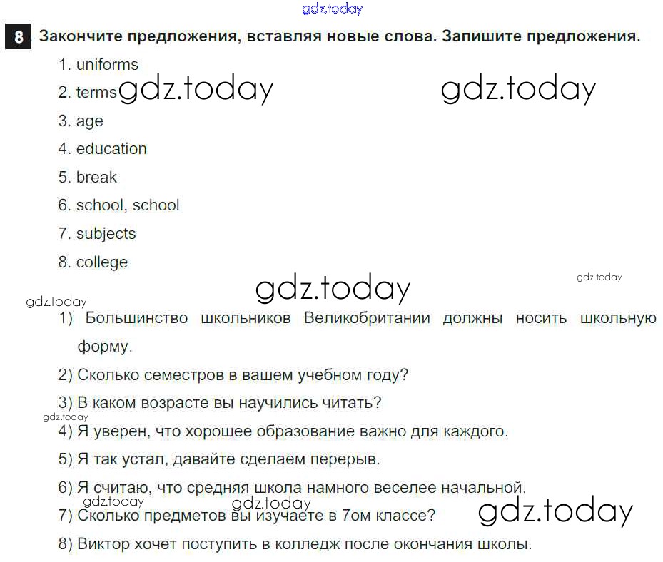На страницах сайта gdz.today вы найдете учебный и вспомогательный материал, направленный на улучшения знаний школьной программы. ГДЗ - онлайн мир знаний Step 4 Решение к UNIT 1. SCHOOLS AND SCHOOLING. 8 Учебнику по Английскому языку для 7 класса Афанасьева, Михеева Дрофа Rainbow 2019