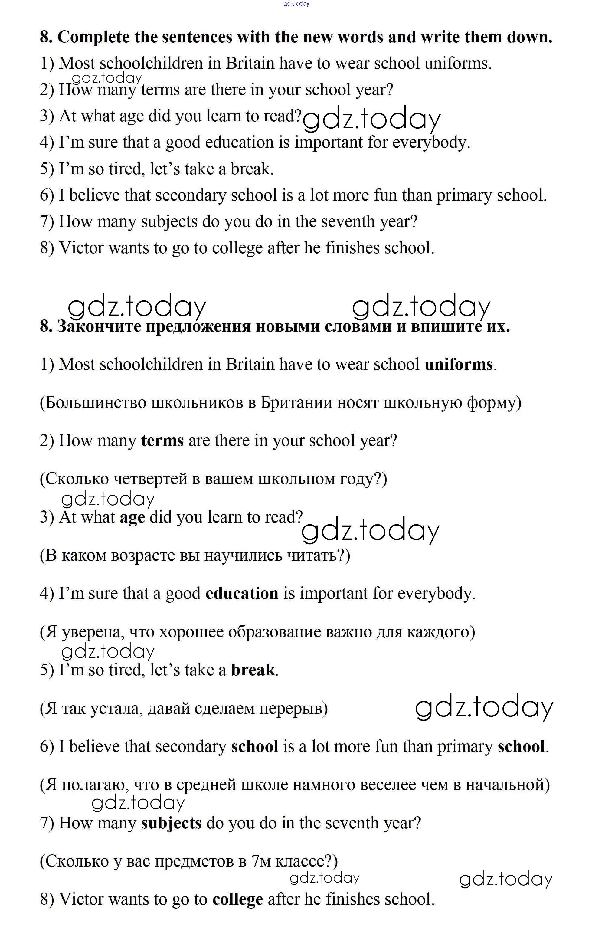 Ответы к Step 4 Решение к UNIT 1. SCHOOLS AND SCHOOLING. 8 Учебнику по Английскому языку для 7 класса Афанасьева, Михеева Дрофа Rainbow 2019