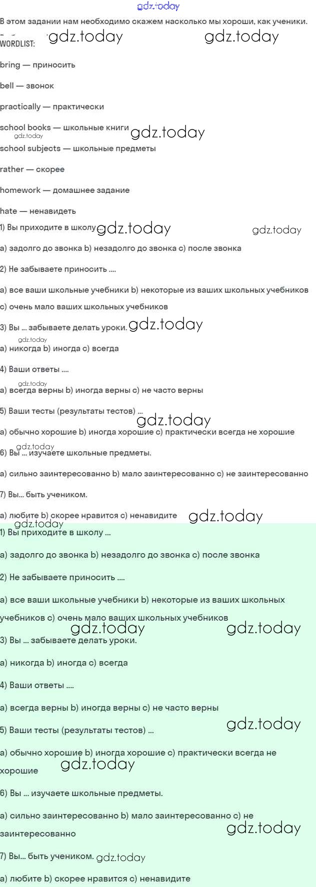 На страницах сайта gdz.today вы найдете учебный и вспомогательный материал, направленный на улучшения знаний школьной программы. ГДЗ - онлайн мир знаний Step 6 Решение к UNIT 1. SCHOOLS AND SCHOOLING. 7 Учебнику по Английскому языку для 7 класса Афанасьева, Михеева Дрофа Rainbow 2019