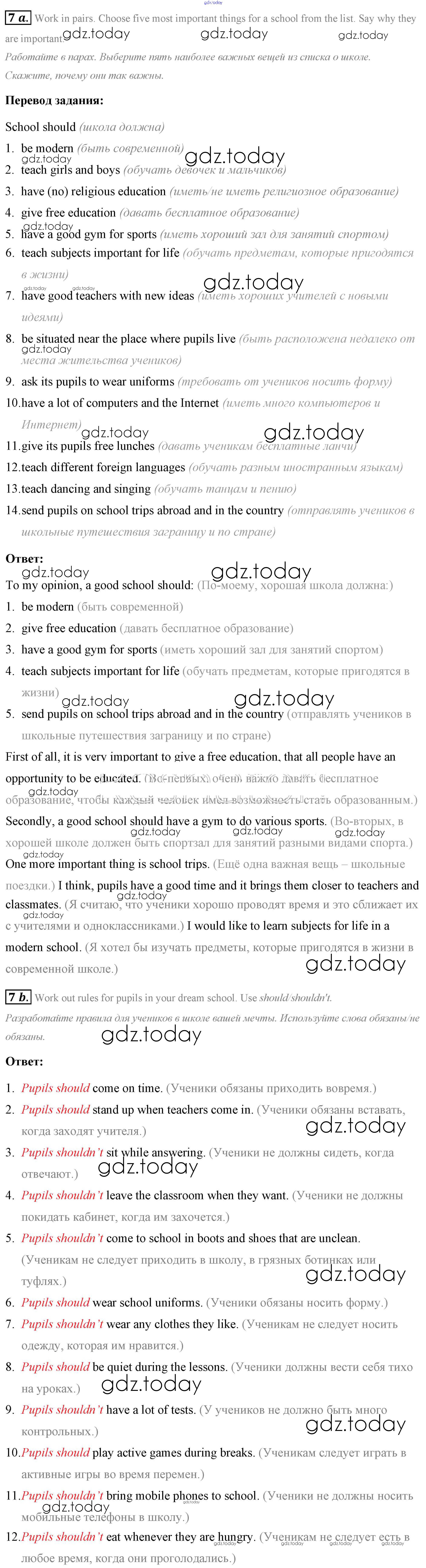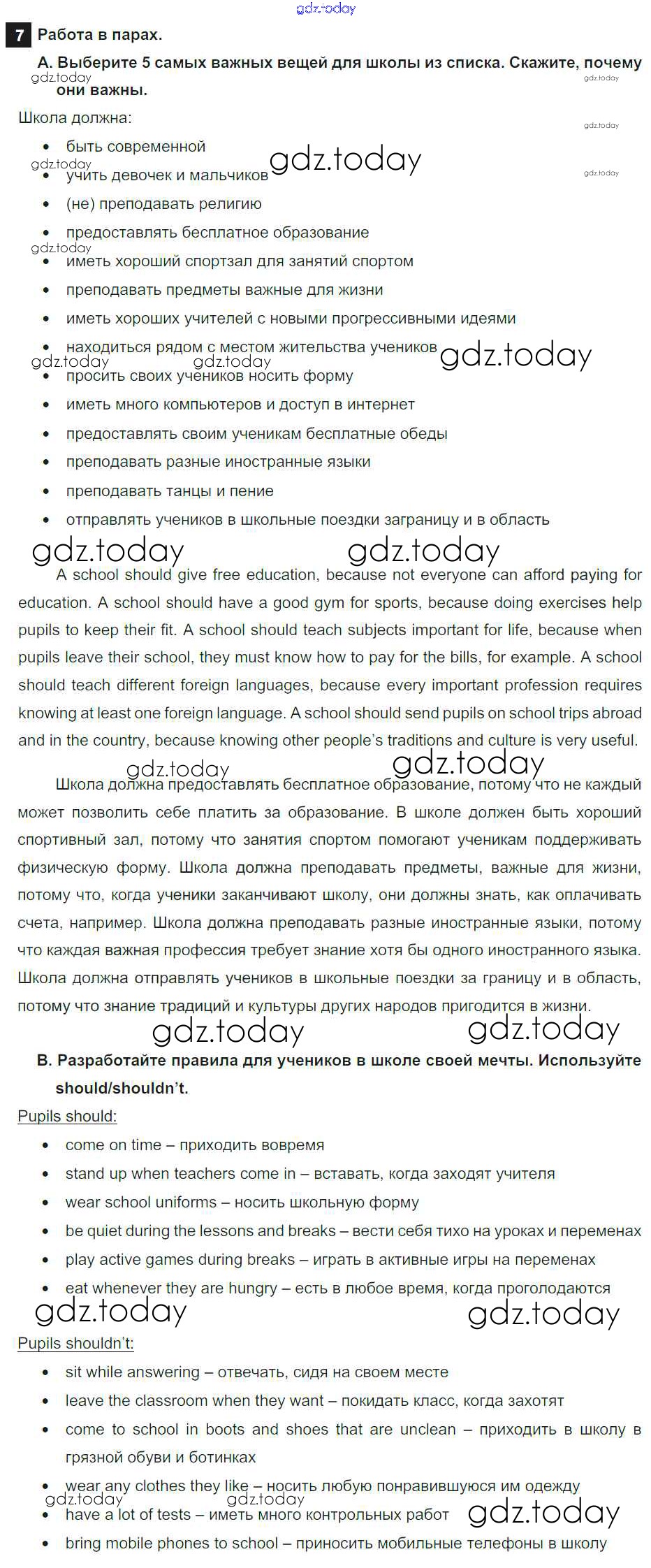 На страницах сайта gdz.today вы найдете учебный и вспомогательный материал, направленный на улучшения знаний школьной программы. ГДЗ - онлайн мир знаний Step 8 Решение к UNIT 1. SCHOOLS AND SCHOOLING. 7 Учебнику по Английскому языку для 7 класса Афанасьева, Михеева Дрофа Rainbow 2019