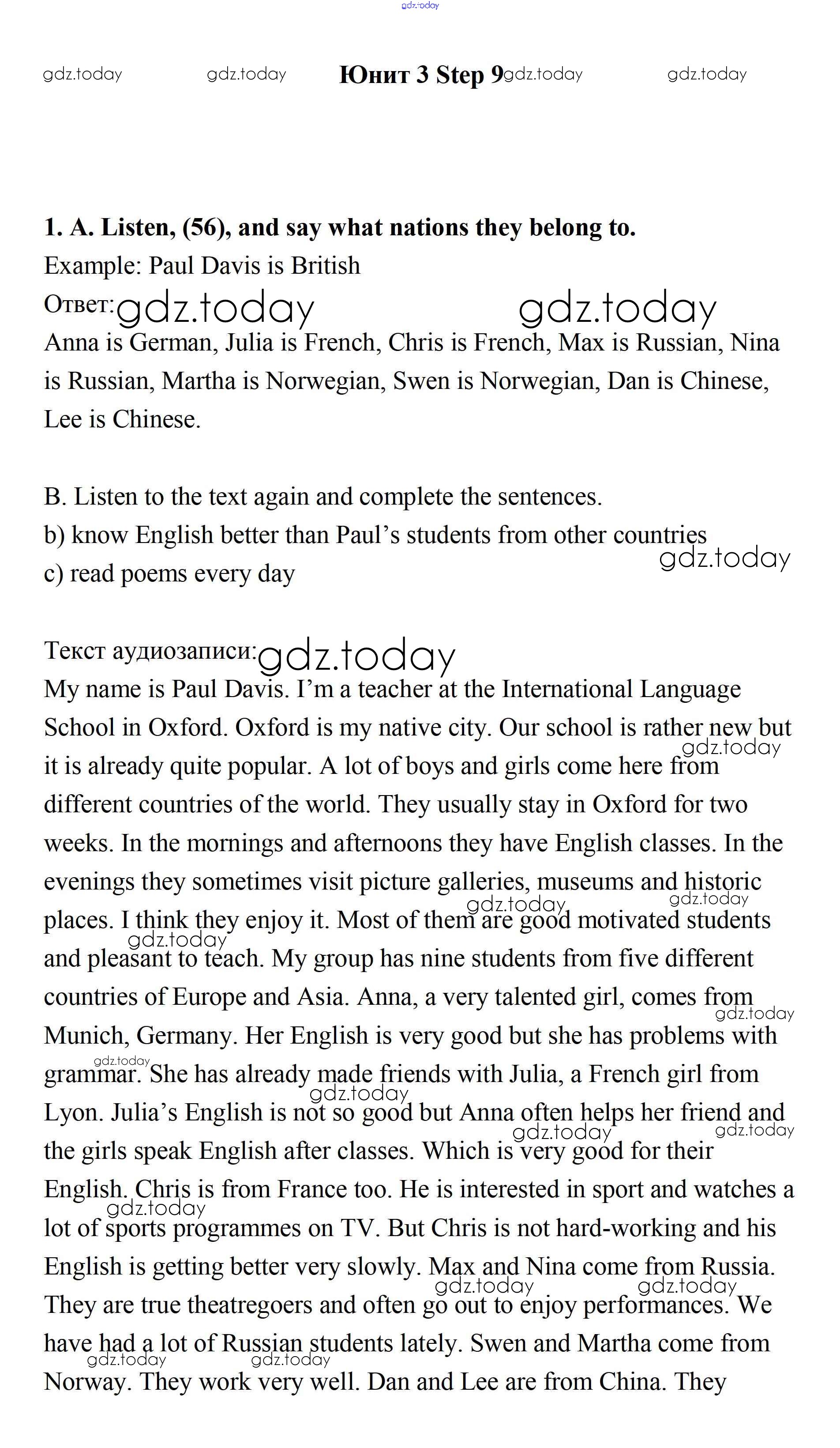 На страницах сайта gdz.today вы найдете учебный и вспомогательный материал, направленный на улучшения знаний школьной программы. ГДЗ - онлайн мир знаний Step 9 Consolidation Class: Решение к UNIT 3. SOME FACTS ABOUT THE ENGLISH-SPEAKING WORLD. 1 Учебнику по Английскому языку для 7 класса Афанасьева, Михеева Дрофа Rainbow 2019
