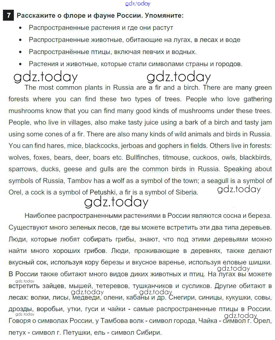 На страницах сайта gdz.today вы найдете учебный и вспомогательный материал, направленный на улучшения знаний школьной программы. ГДЗ - онлайн мир знаний Step 7 Решение к UNIT 4. LIVING THINGS AROUND US. 7 Учебнику по Английскому языку для 7 класса Афанасьева, Михеева Дрофа Rainbow 2019