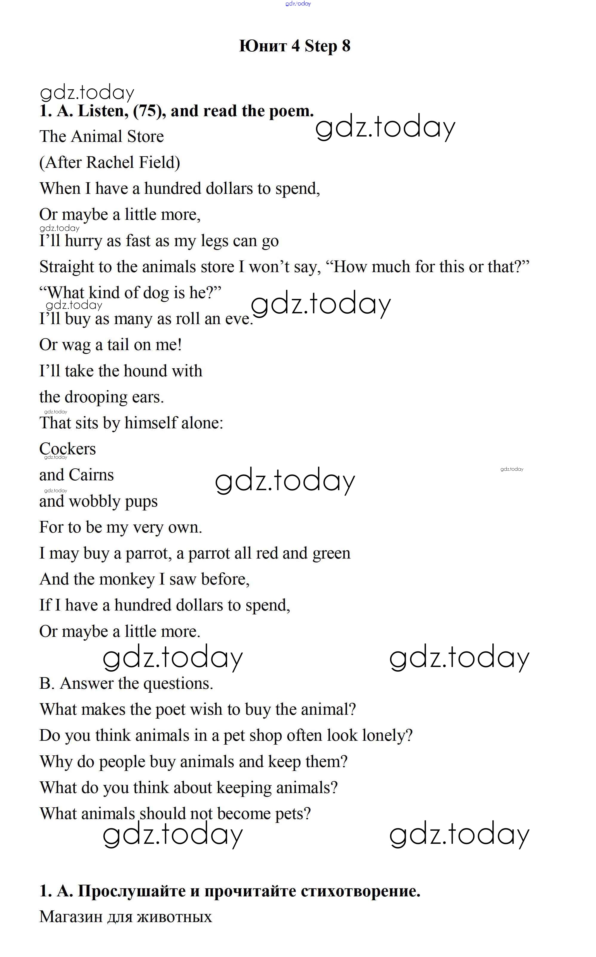 На страницах сайта gdz.today вы найдете учебный и вспомогательный материал, направленный на улучшения знаний школьной программы. ГДЗ - онлайн мир знаний Step 8 Решение к UNIT 4. LIVING THINGS AROUND US. 1 Учебнику по Английскому языку для 7 класса Афанасьева, Михеева Дрофа Rainbow 2019