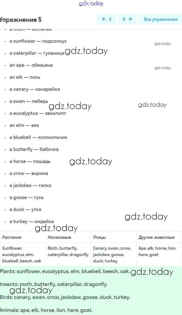 На страницах сайта gdz.today вы найдете учебный и вспомогательный материал, направленный на улучшения знаний школьной программы. ГДЗ - онлайн мир знаний Step 9 Consolidation Class: Решение к UNIT 4. LIVING THINGS AROUND US. 5 Учебнику по Английскому языку для 7 класса Афанасьева, Михеева Дрофа Rainbow 2019