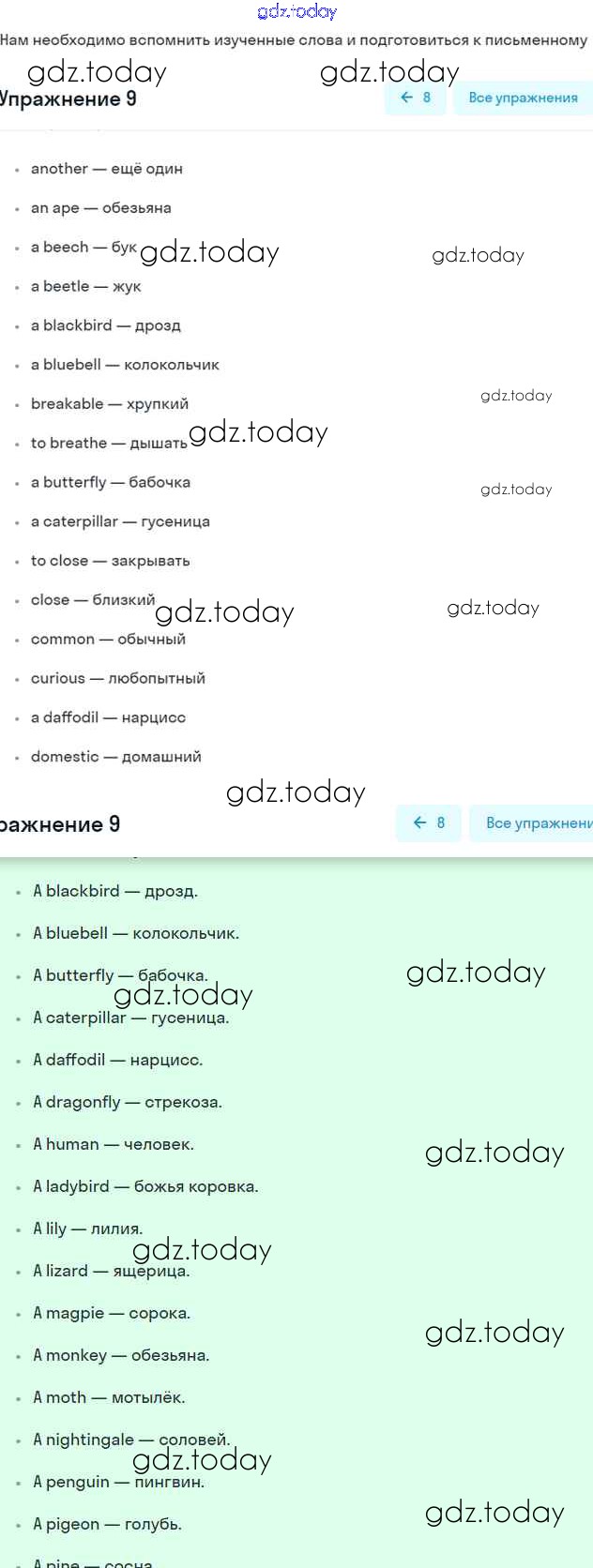 На страницах сайта gdz.today вы найдете учебный и вспомогательный материал, направленный на улучшения знаний школьной программы. ГДЗ - онлайн мир знаний Step 9 Consolidation Class: Решение к UNIT 4. LIVING THINGS AROUND US. 9 Учебнику по Английскому языку для 7 класса Афанасьева, Михеева Дрофа Rainbow 2019