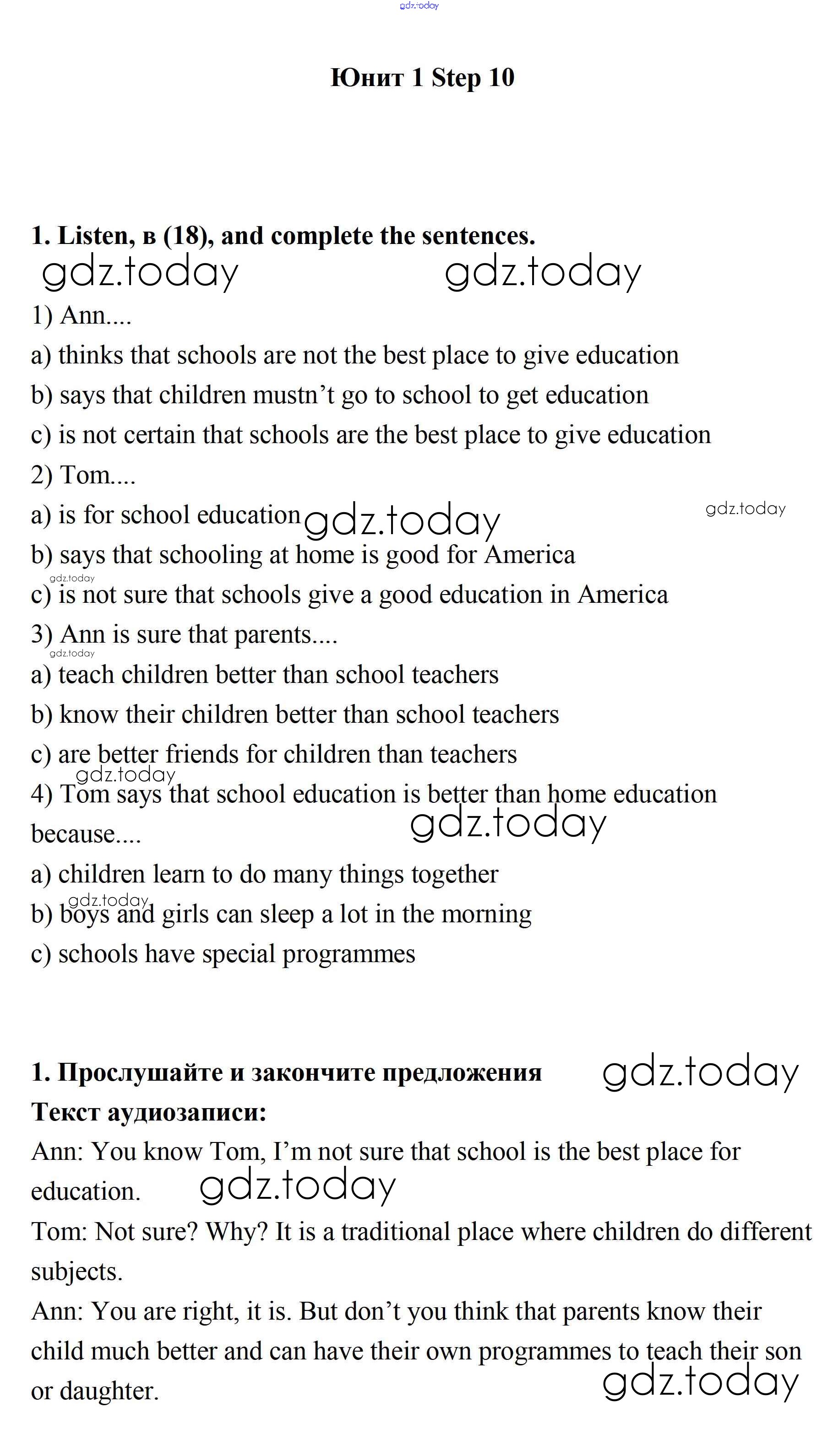 Решение к UNIT 1. SCHOOLS AND SCHOOLING.