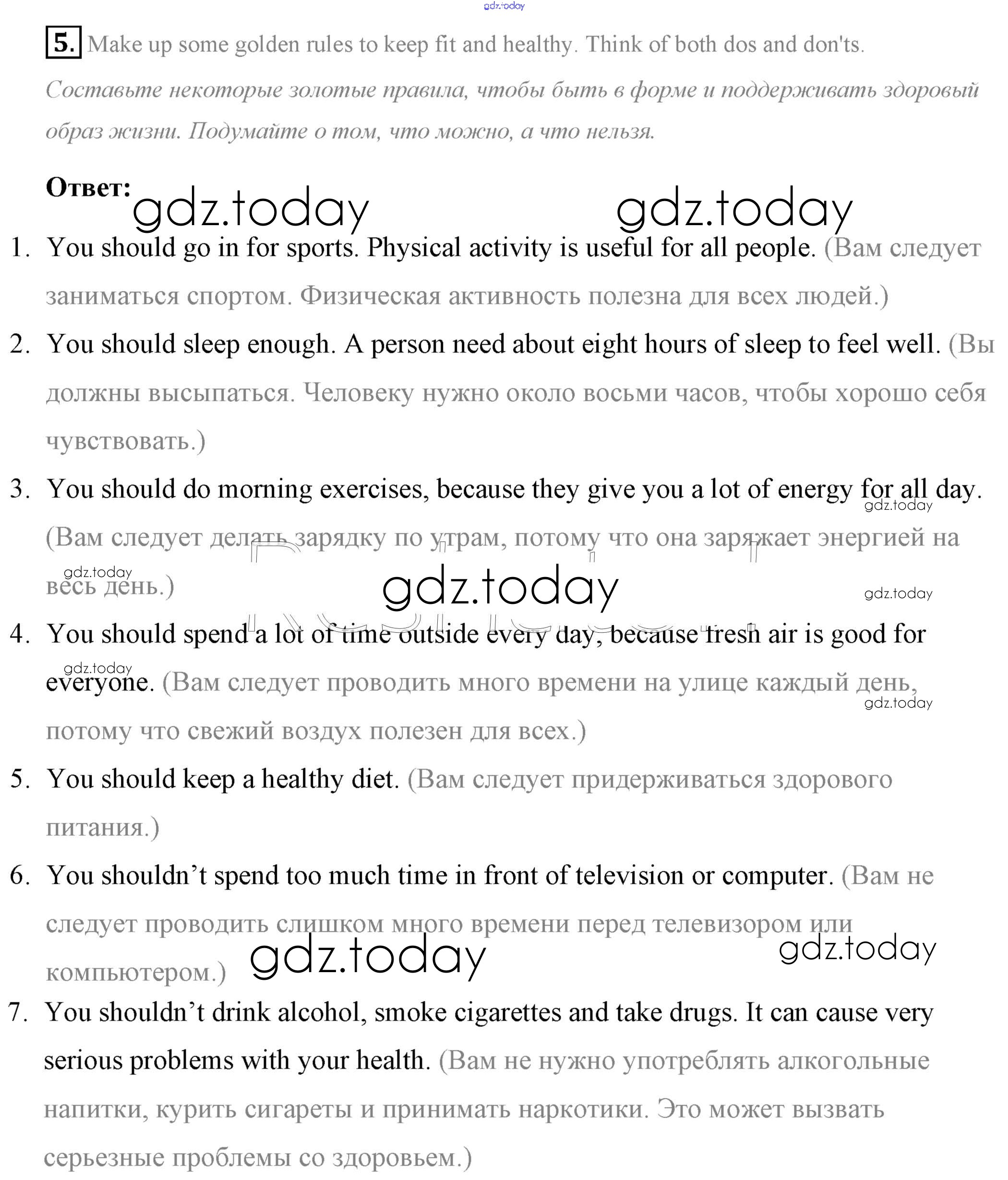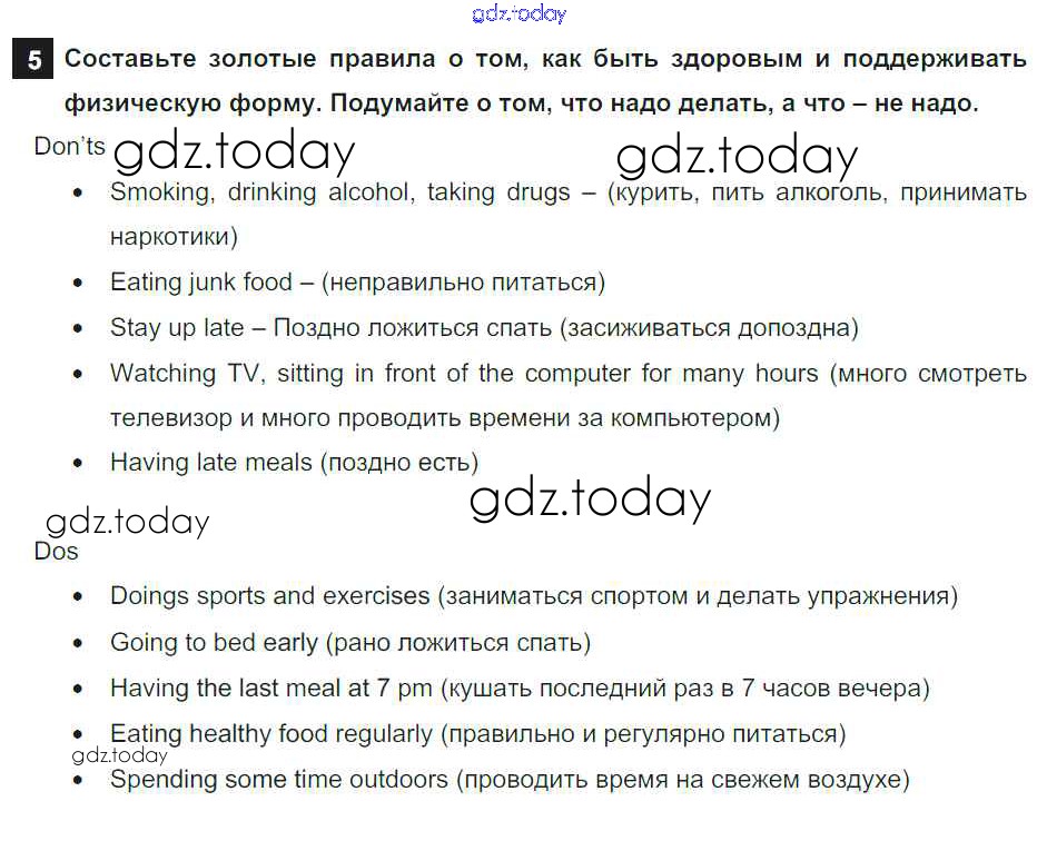 На страницах сайта gdz.today вы найдете учебный и вспомогательный материал, направленный на улучшения знаний школьной программы. ГДЗ - онлайн мир знаний Step 10 Test Yourself: Решение к UNIT 6. LIVING HEALTHY. 5 Учебнику по Английскому языку для 7 класса Афанасьева, Михеева Дрофа Rainbow 2019