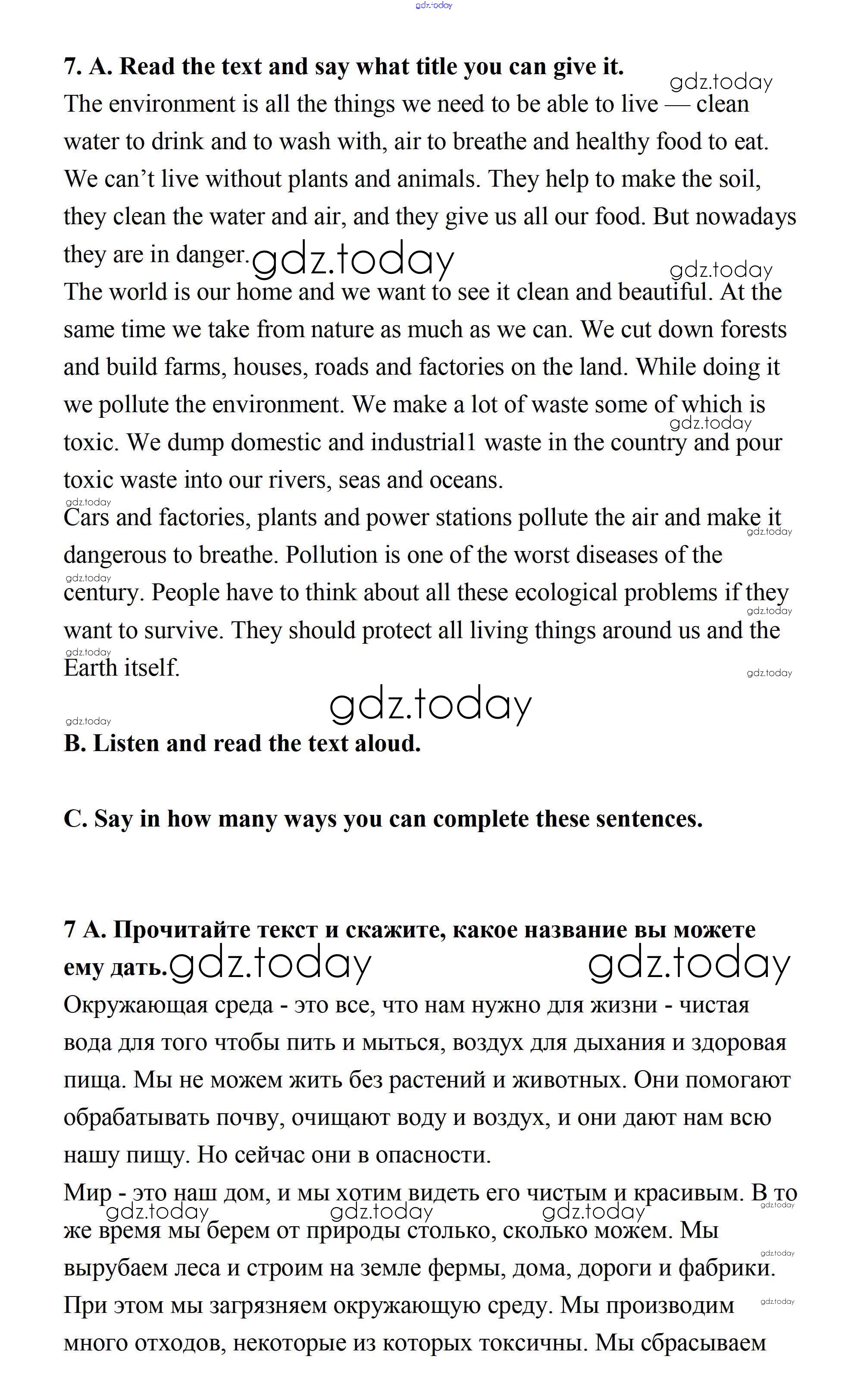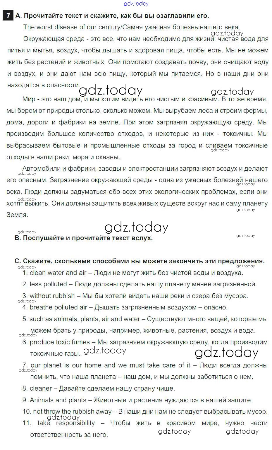 На страницах сайта gdz.today вы найдете учебный и вспомогательный материал, направленный на улучшения знаний школьной программы. ГДЗ - онлайн мир знаний Step 4 Решение к UNIT 5. THE ABC OF ECOLOGY. 7 Учебнику по Английскому языку для 7 класса Афанасьева, Михеева Дрофа Rainbow 2019