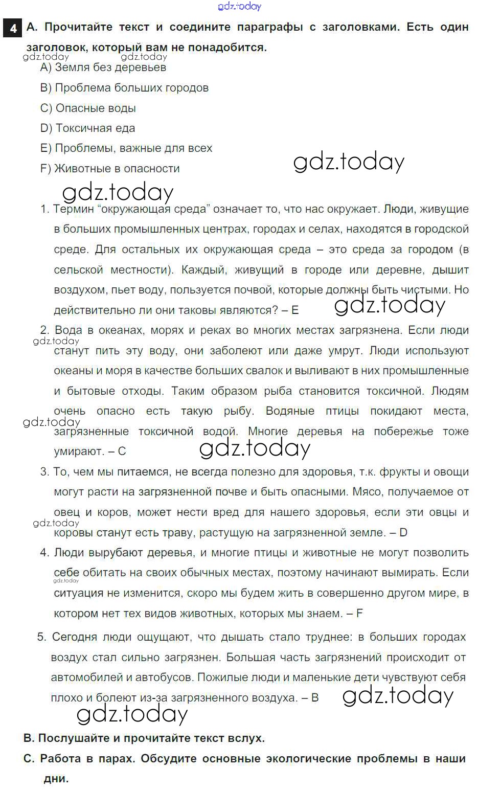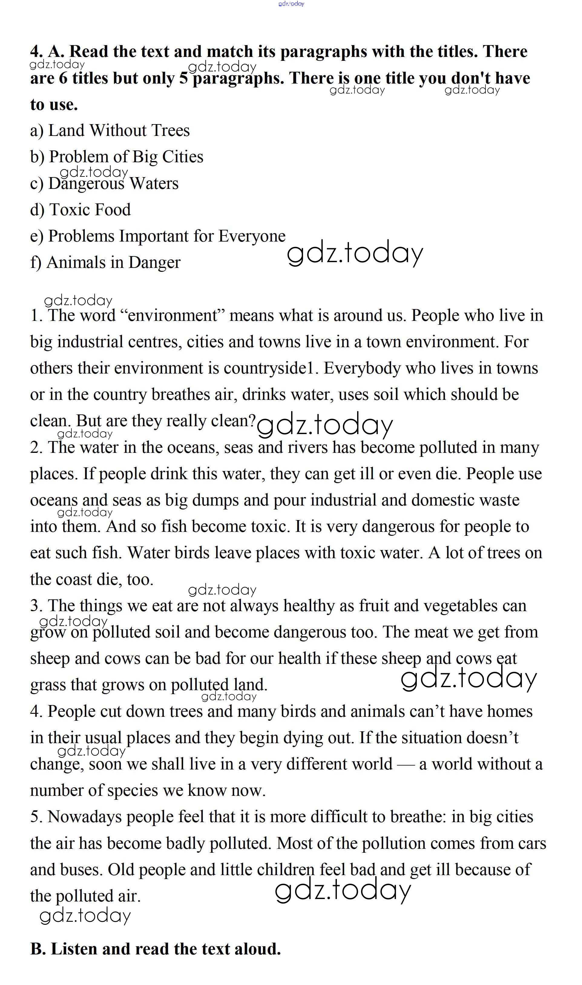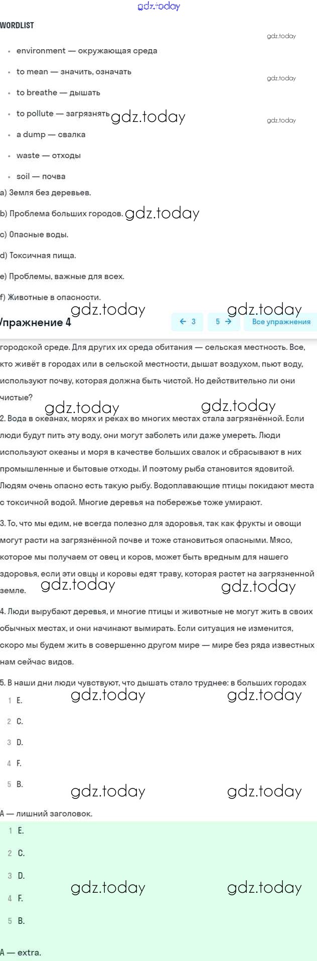 На страницах сайта gdz.today вы найдете учебный и вспомогательный материал, направленный на улучшения знаний школьной программы. ГДЗ - онлайн мир знаний Step 5 Решение к UNIT 5. THE ABC OF ECOLOGY. 4 Учебнику по Английскому языку для 7 класса Афанасьева, Михеева Дрофа Rainbow 2019