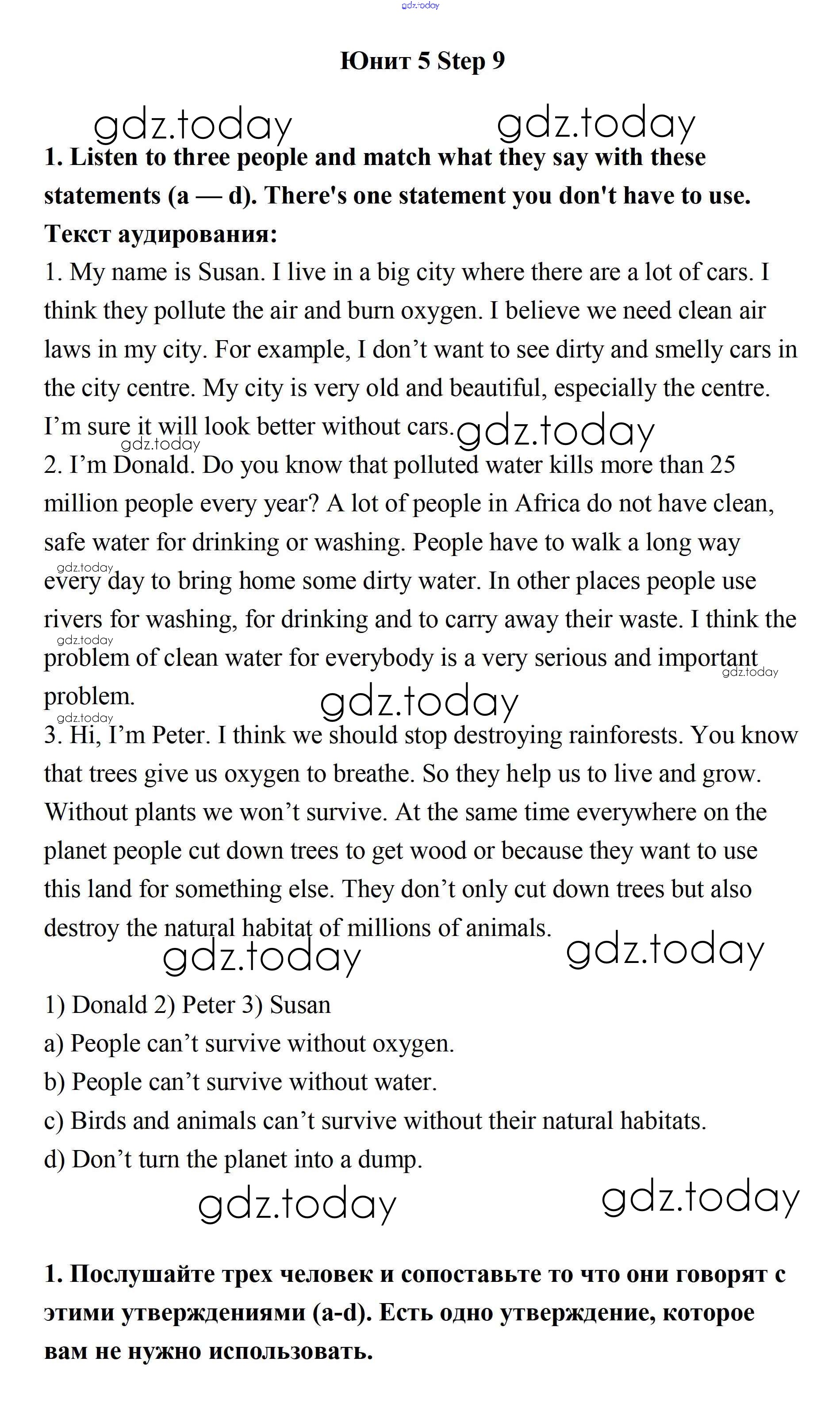 На страницах сайта gdz.today вы найдете учебный и вспомогательный материал, направленный на улучшения знаний школьной программы. ГДЗ - онлайн мир знаний Step 9 Consolidation Class: Решение к UNIT 5. THE ABC OF ECOLOGY. 1 Учебнику по Английскому языку для 7 класса Афанасьева, Михеева Дрофа Rainbow 2019