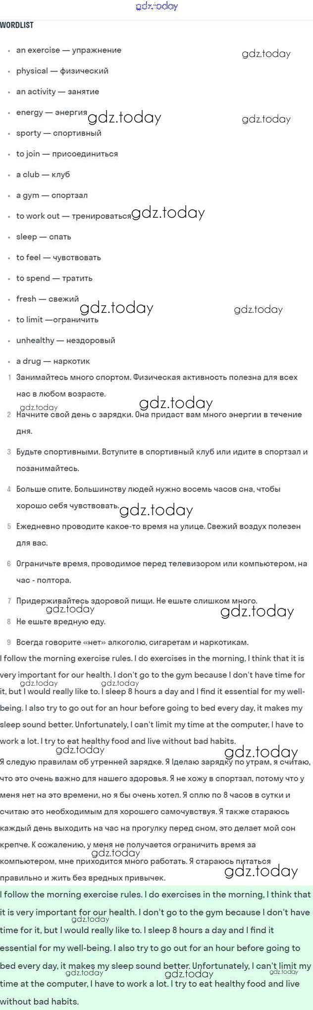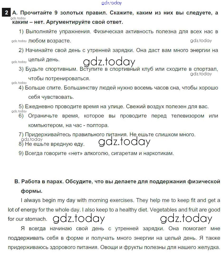 На страницах сайта gdz.today вы найдете учебный и вспомогательный материал, направленный на улучшения знаний школьной программы. ГДЗ - онлайн мир знаний Step 1 Решение к UNIT 6. LIVING HEALTHY. 2 Учебнику по Английскому языку для 7 класса Афанасьева, Михеева Дрофа Rainbow 2019
