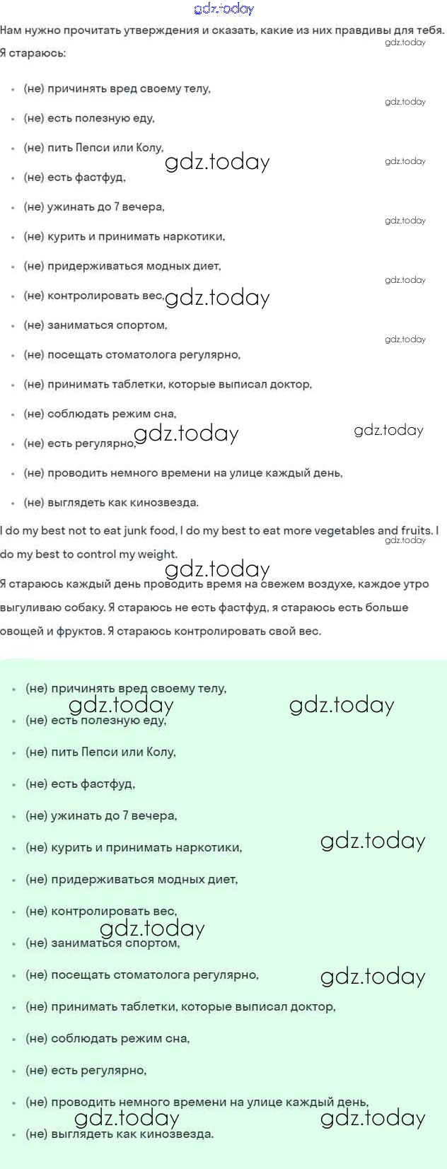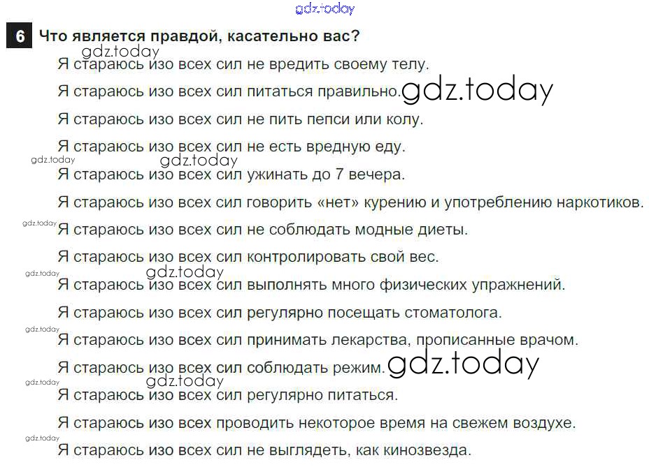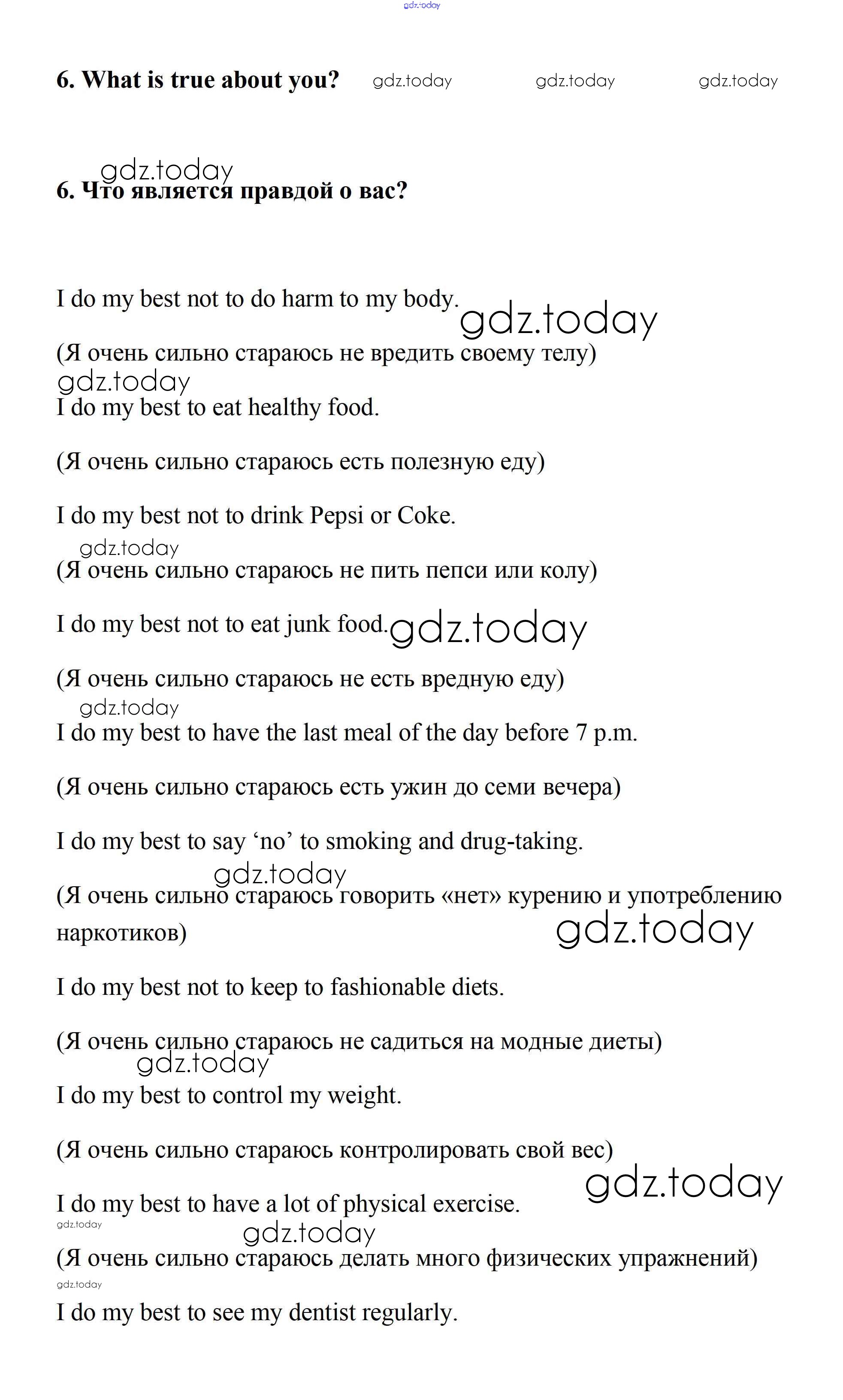 На страницах сайта gdz.today вы найдете учебный и вспомогательный материал, направленный на улучшения знаний школьной программы. ГДЗ - онлайн мир знаний Step 6 Решение к UNIT 6. LIVING HEALTHY. 6 Учебнику по Английскому языку для 7 класса Афанасьева, Михеева Дрофа Rainbow 2019