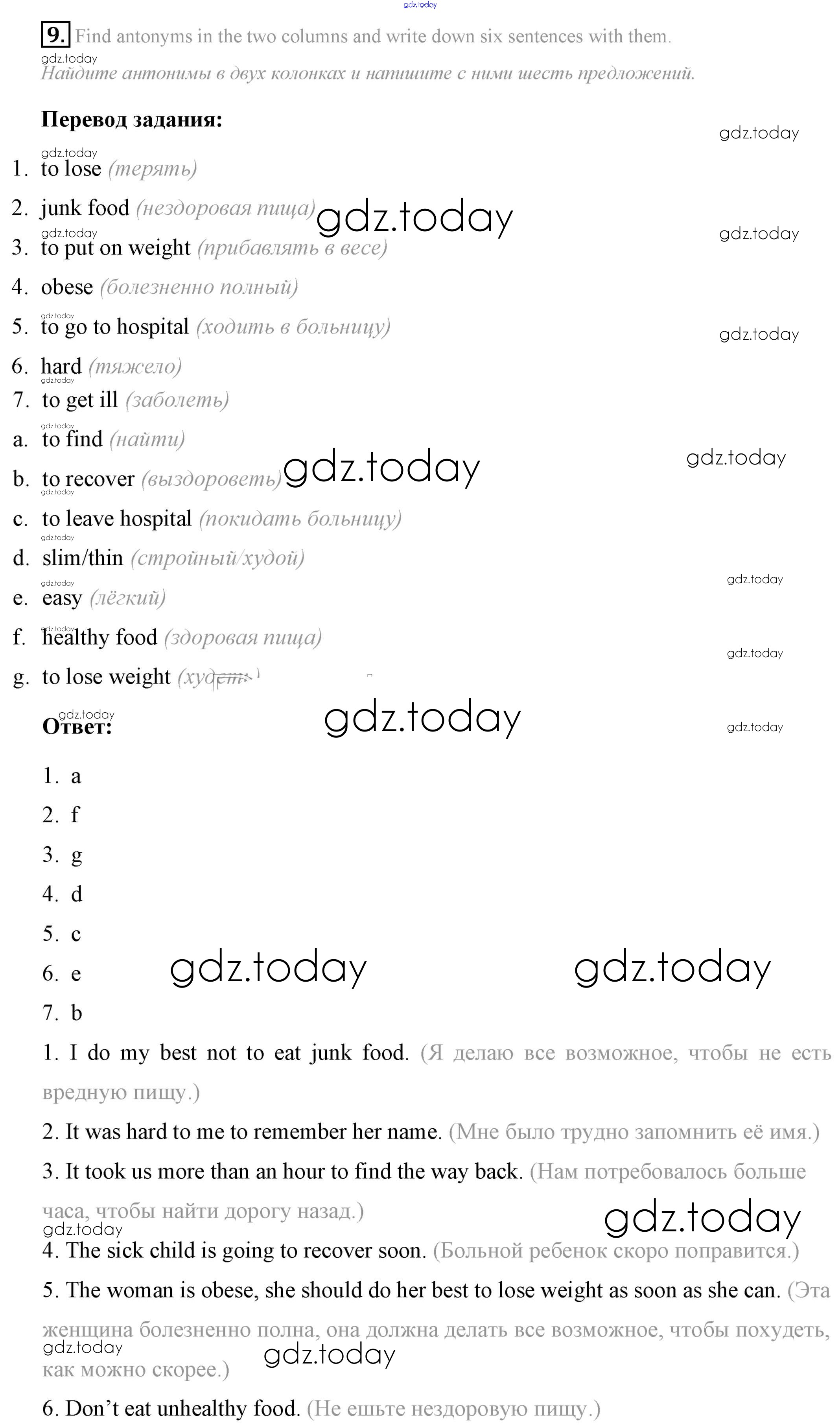На страницах сайта gdz.today вы найдете учебный и вспомогательный материал, направленный на улучшения знаний школьной программы. ГДЗ - онлайн мир знаний Step 6 Решение к UNIT 6. LIVING HEALTHY. 9 Учебнику по Английскому языку для 7 класса Афанасьева, Михеева Дрофа Rainbow 2019