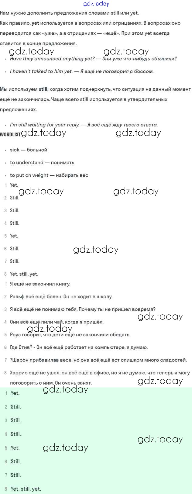 На страницах сайта gdz.today вы найдете учебный и вспомогательный материал, направленный на улучшения знаний школьной программы. ГДЗ - онлайн мир знаний Step 8 Решение к UNIT 6. LIVING HEALTHY. 9 Учебнику по Английскому языку для 7 класса Афанасьева, Михеева Дрофа Rainbow 2019