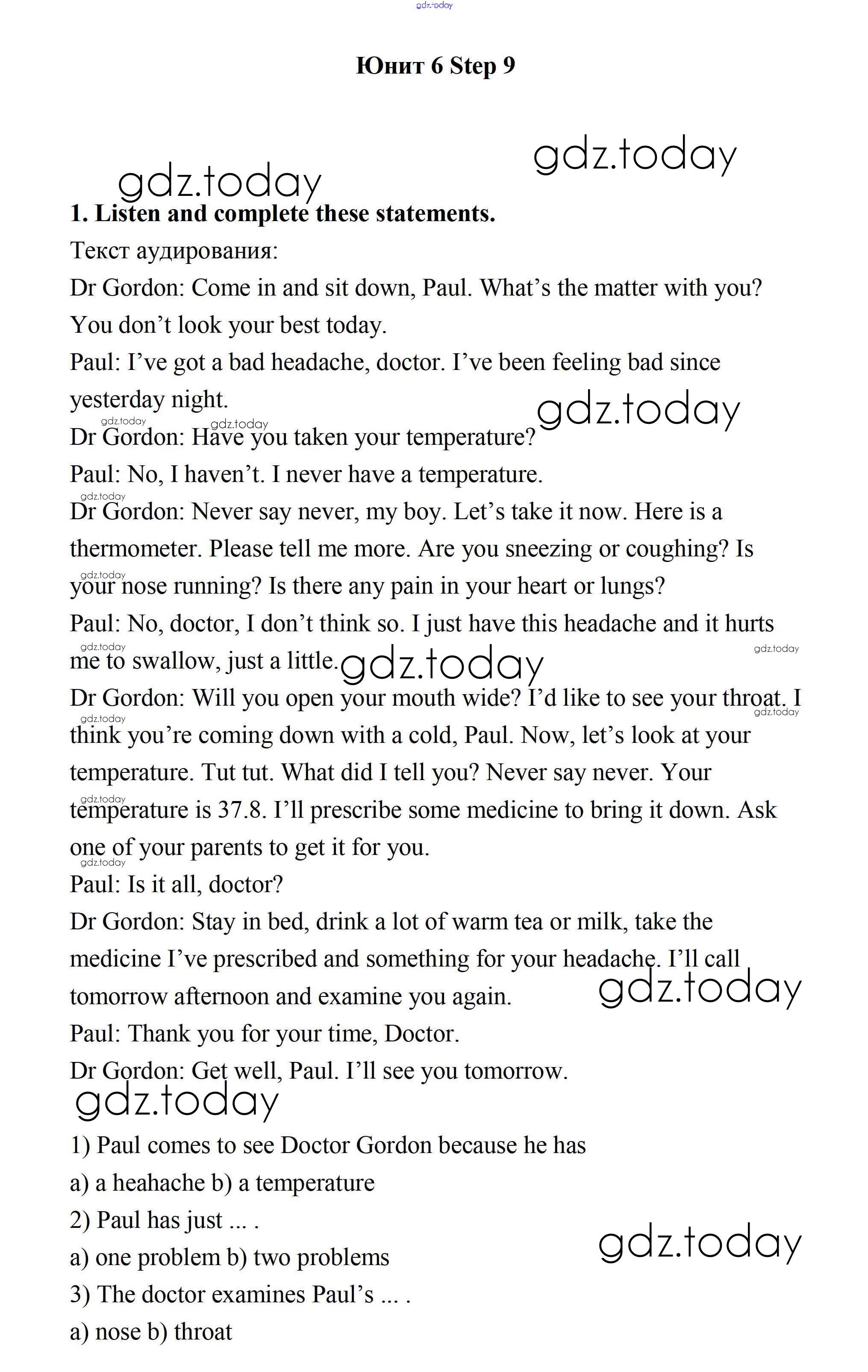 На страницах сайта gdz.today вы найдете учебный и вспомогательный материал, направленный на улучшения знаний школьной программы. ГДЗ - онлайн мир знаний Step 9 Consolidation Class: Решение к UNIT 6. LIVING HEALTHY. 1 Учебнику по Английскому языку для 7 класса Афанасьева, Михеева Дрофа Rainbow 2019