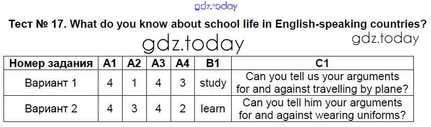 На страницах сайта gdz.today вы найдете учебный и вспомогательный материал, направленный на улучшения знаний школьной программы. ГДЗ - онлайн мир знаний Решение к тестам 17 Контрольно-измерительным материалам (КИМ) по Английскому языку для 7 класса Артюхова ВАКО 2017