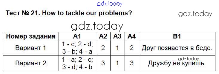 На страницах сайта gdz.today вы найдете учебный и вспомогательный материал, направленный на улучшения знаний школьной программы. ГДЗ - онлайн мир знаний Решение к тестам 21 Контрольно-измерительным материалам (КИМ) по Английскому языку для 7 класса Артюхова ВАКО 2017