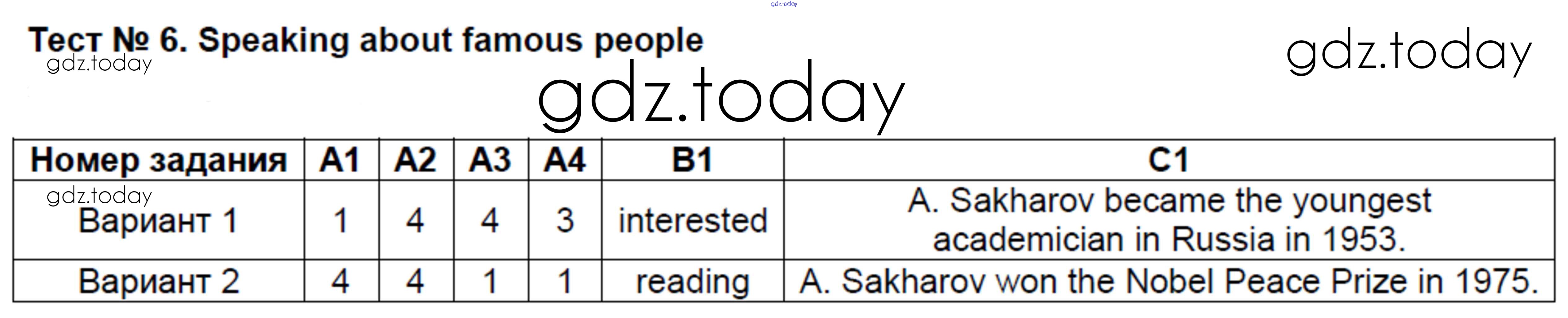 На страницах сайта gdz.today вы найдете учебный и вспомогательный материал, направленный на улучшения знаний школьной программы. ГДЗ - онлайн мир знаний Решение к тестам 6 Контрольно-измерительным материалам (КИМ) по Английскому языку для 7 класса Артюхова ВАКО 2017