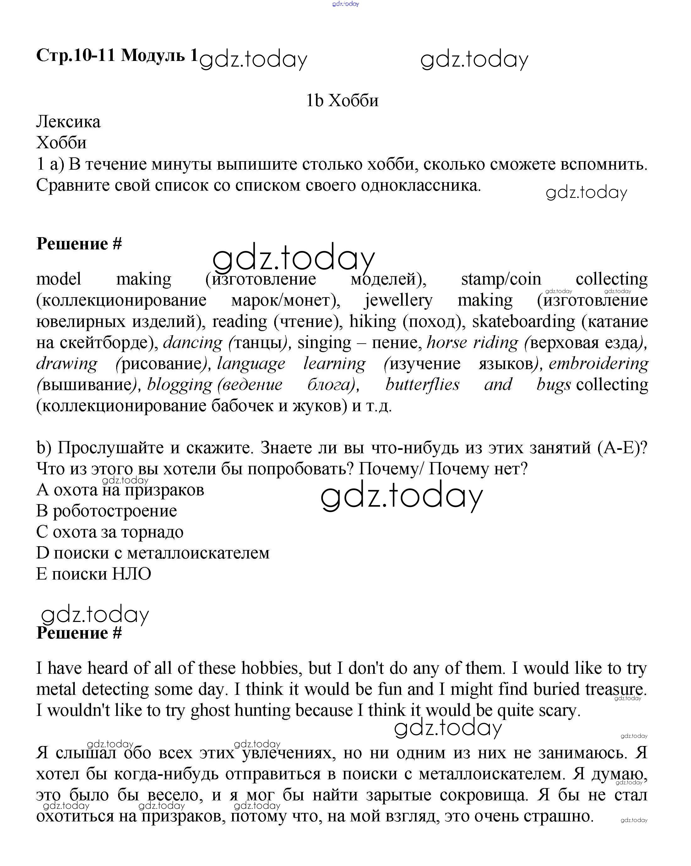 Ответы к Решение к Module 1 стр.10-11 Учебнику по Английскому языку для 7 класса Баранова, Дули Углубленный уровень Просвещение Starlight 2017
