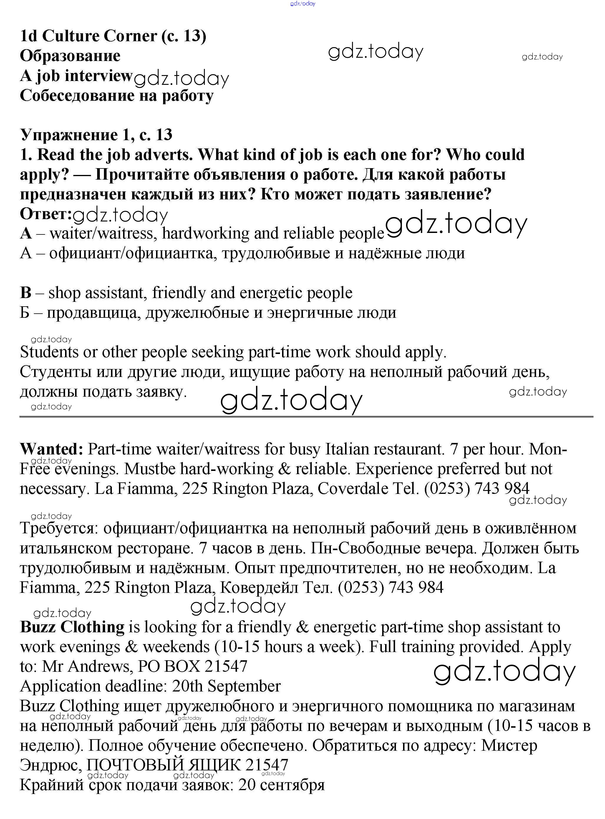 Ответы к Решение к Module 1 стр.13 Учебнику по Английскому языку для 7 класса Баранова, Дули Углубленный уровень Просвещение Starlight 2017